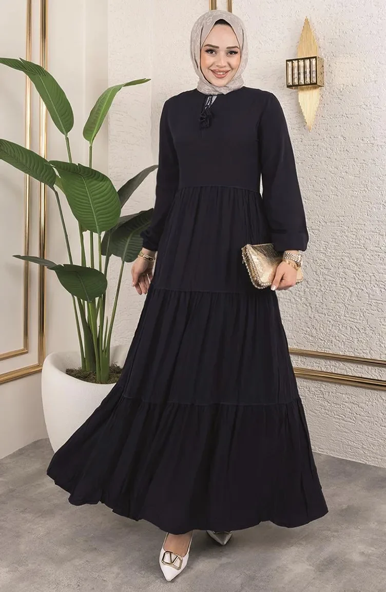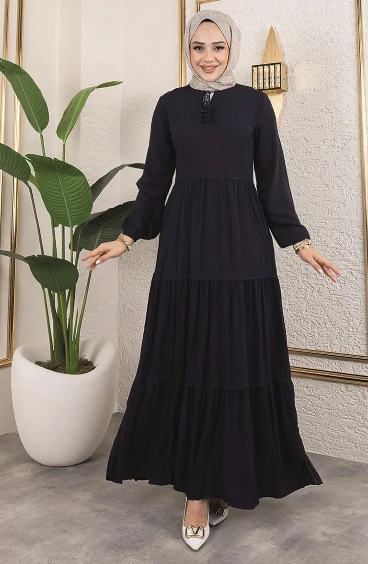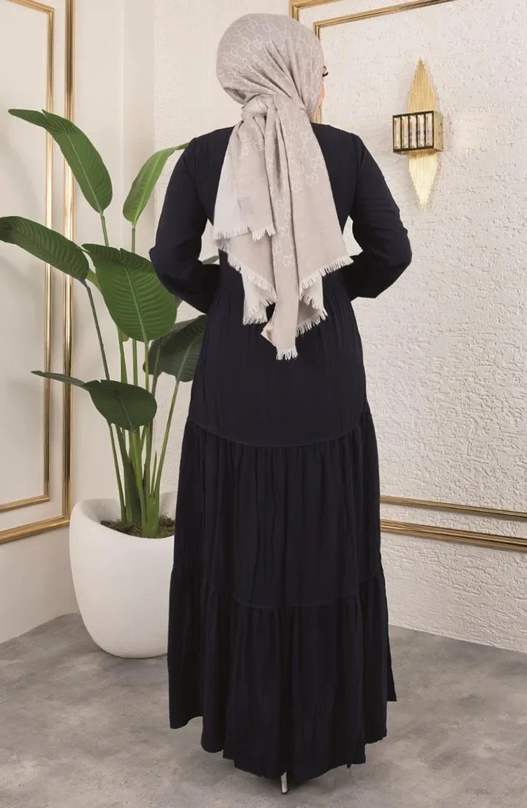 فستان مزين بالشراشيب 0229-04 أزرق داكن 0229-04