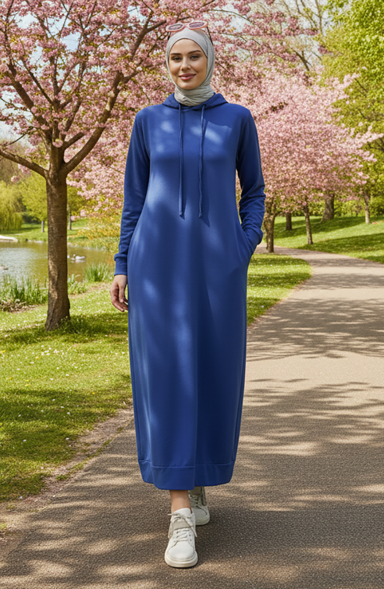 فستان رياضي بغطاء رأس وخيطين 0190-19 لون أزرق 0190-19