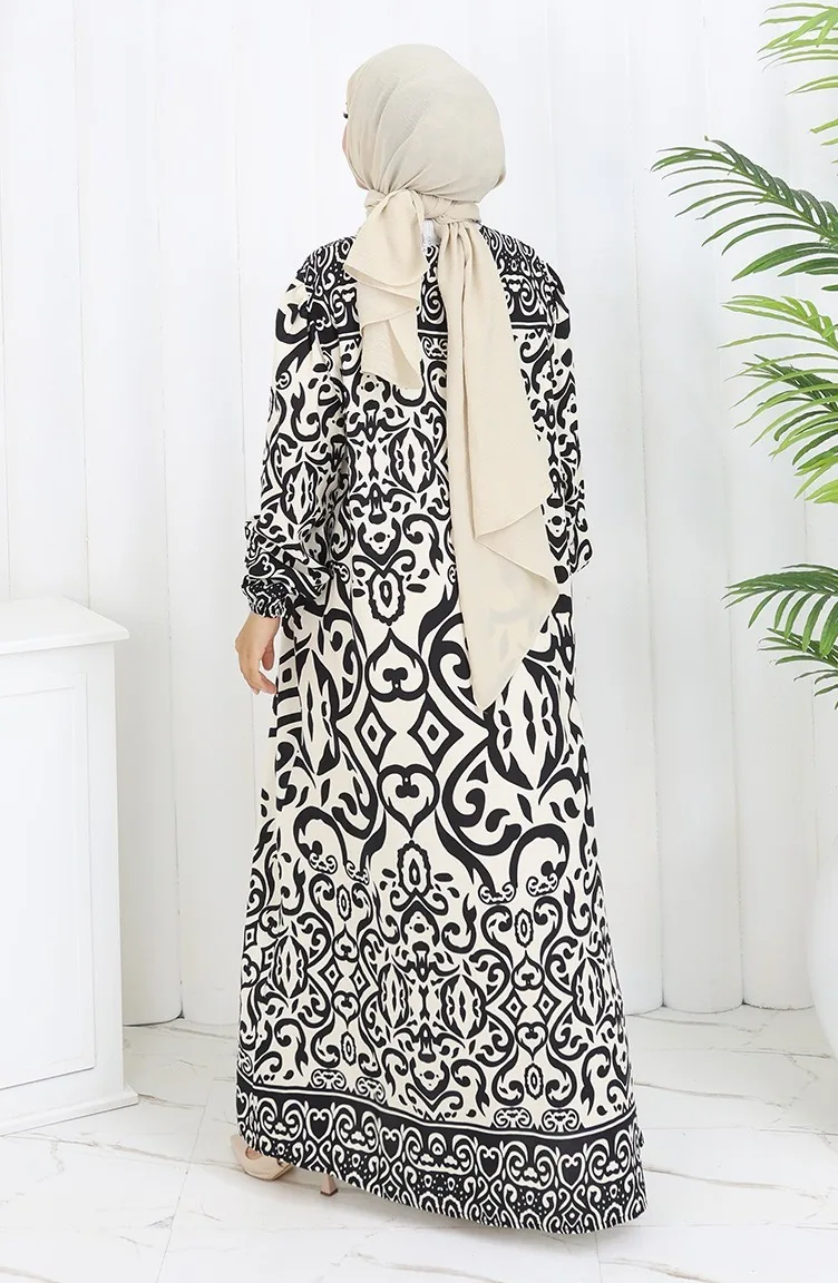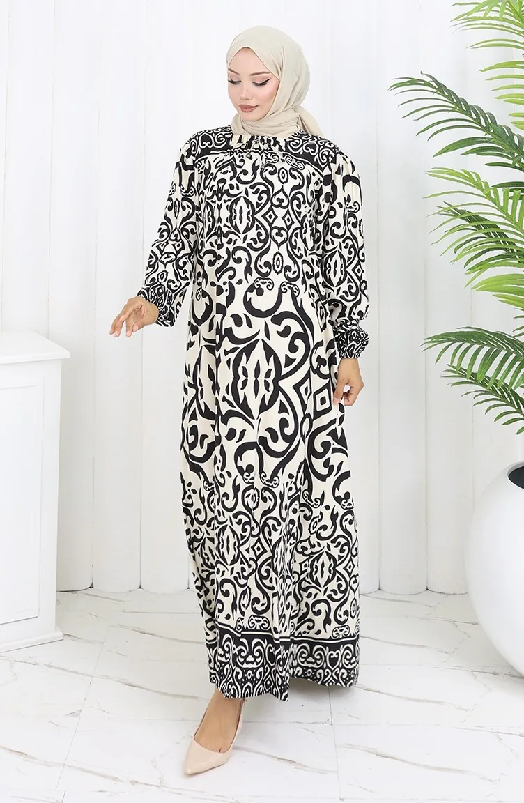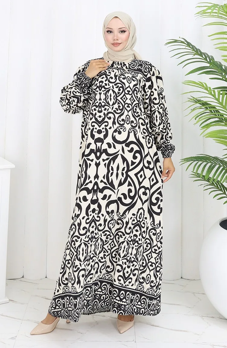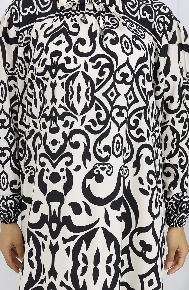 فستان بياقة فيسكوز وتنورة بلون مائي 984585F-01 أبيض وأسود 984585F-01