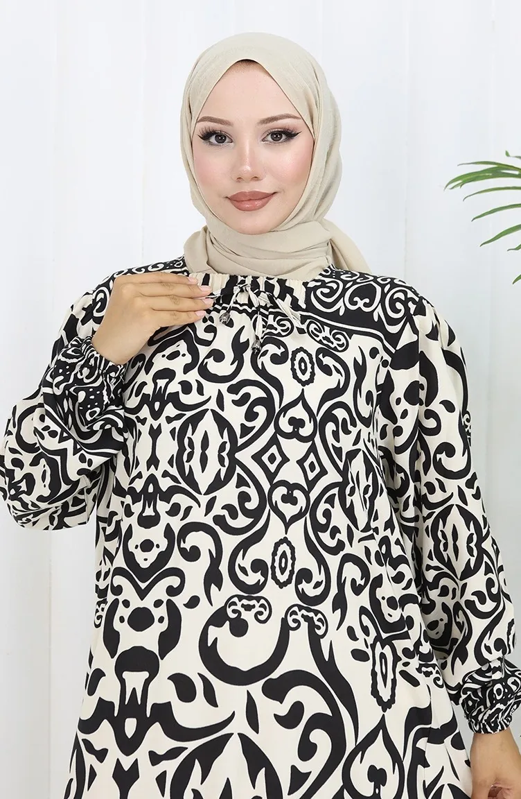 استعمل لون الأبيض. فسكوزي نوع من النسيج الصناعي ومريحة للاستخدام. صمم مع القماش المزخرف. المنتج طويلة الأكمام. مناسب للاستخدام في الصيف. نساء. هناك مقاسات كبيرة.