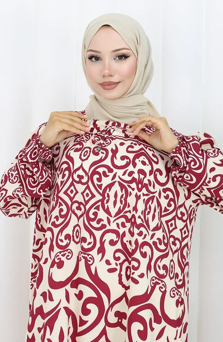 نيلي اللون استخدامها. فسكوزي نوع من النسيج الصناعي ومريحة للاستخدام. صمم مع القماش المزخرف. المنتج طويلة الأكمام. مناسب للاستخدام في الصيف. نساء. هناك مقاسات كبيرة.