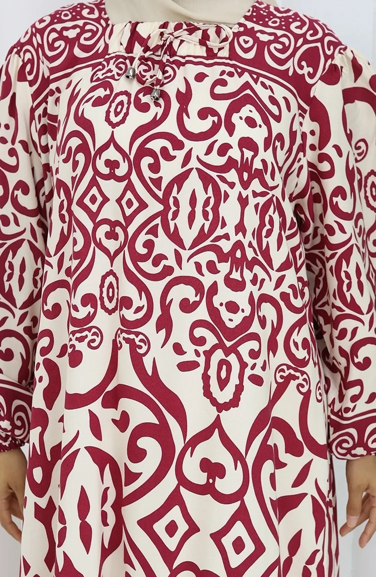 فستان بياقة فيسكوز وتنورة بلون مائي 984585F-02 أبيض فوشيا 984585F-02