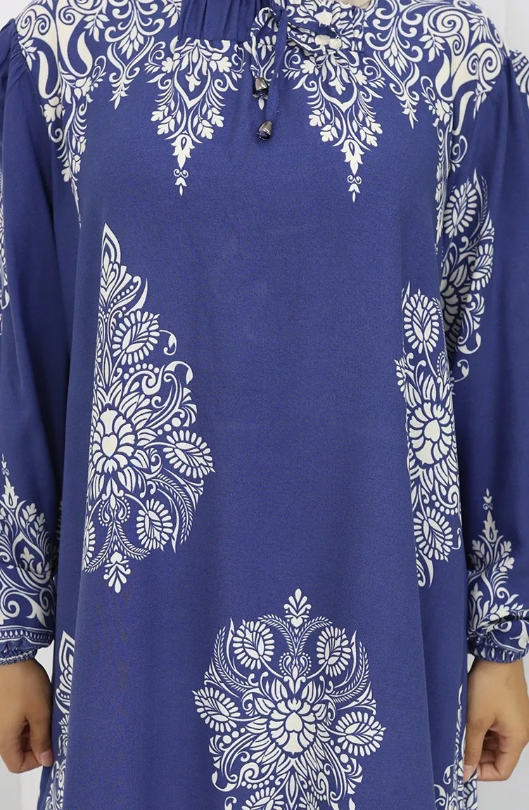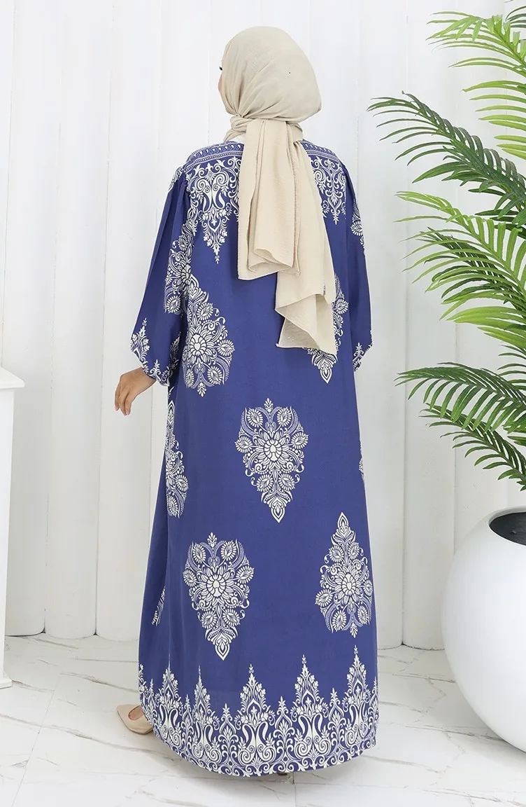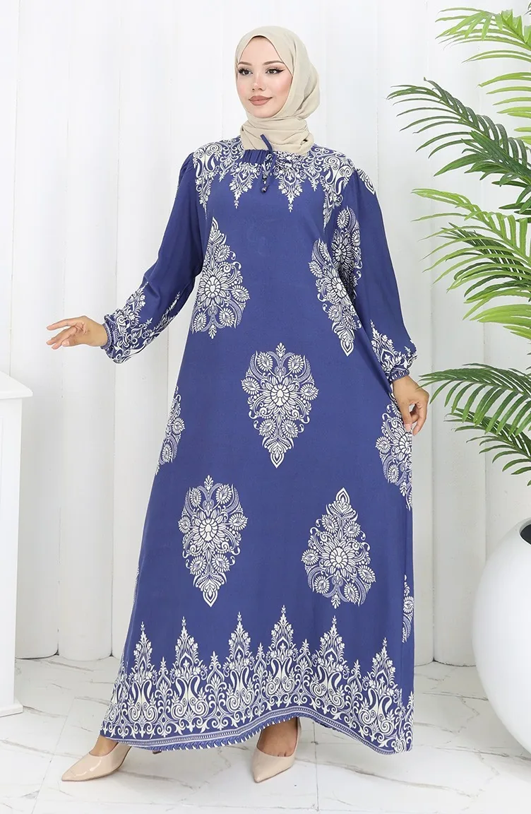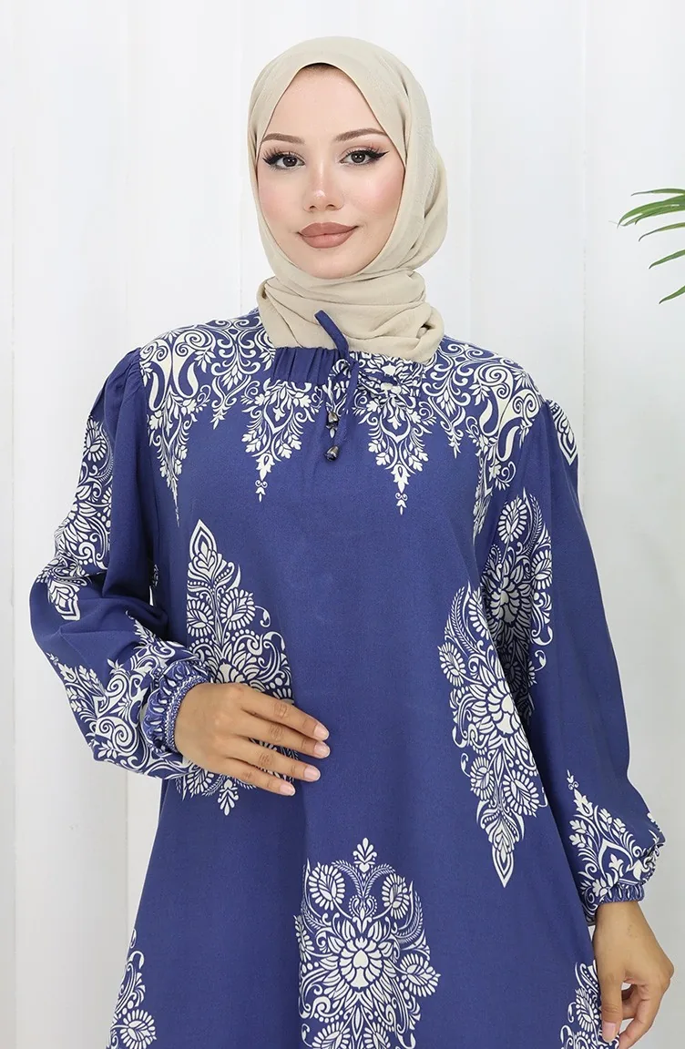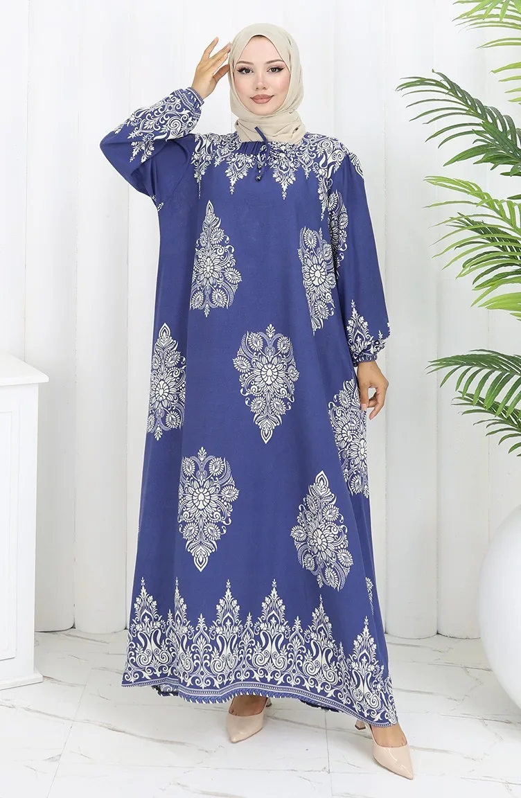 نيلي اللون استخدامها. فسكوزي نوع من النسيج الصناعي ومريحة للاستخدام. صمم مع القماش المزخرف. المنتج طويلة الأكمام. مناسب للاستخدام في الصيف. نساء. هناك مقاسات كبيرة.