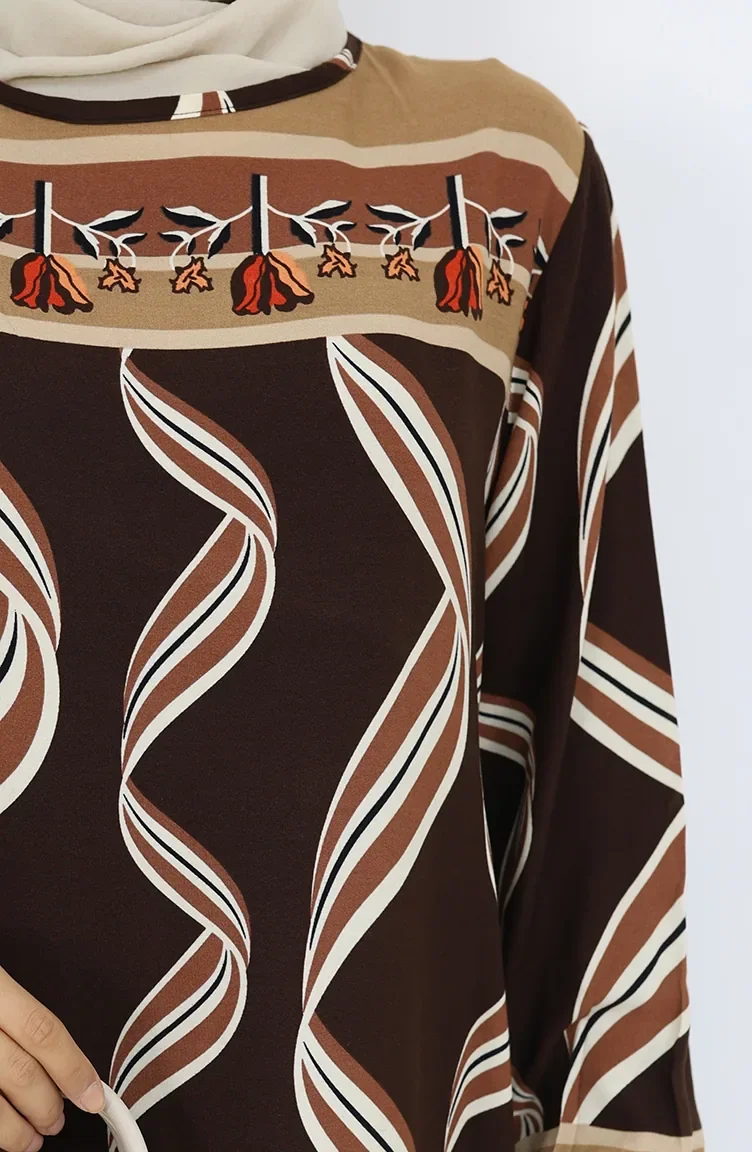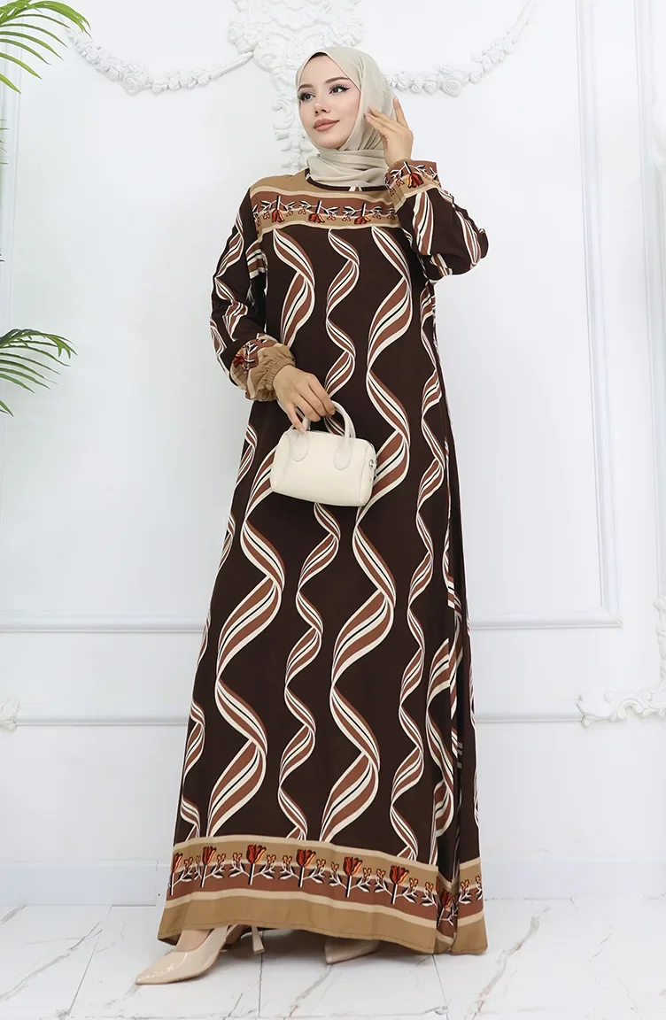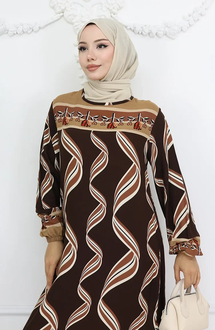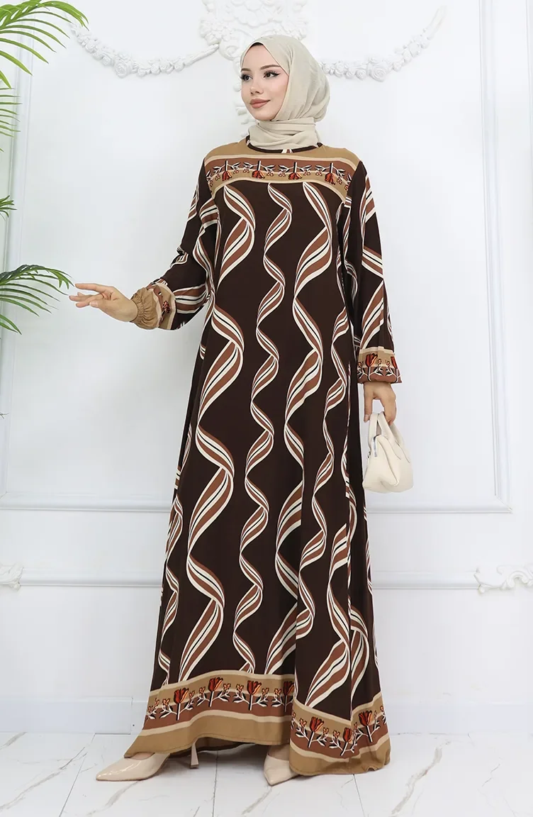 فستان من قماش الفيسكوز بأكمام مرنة 0031-04 بني 0031-04