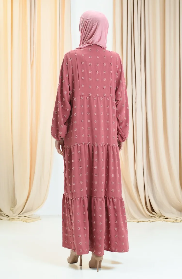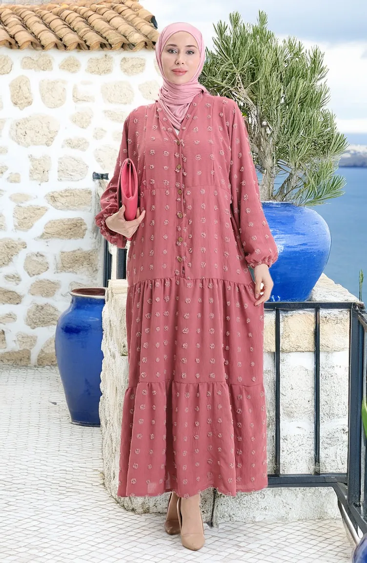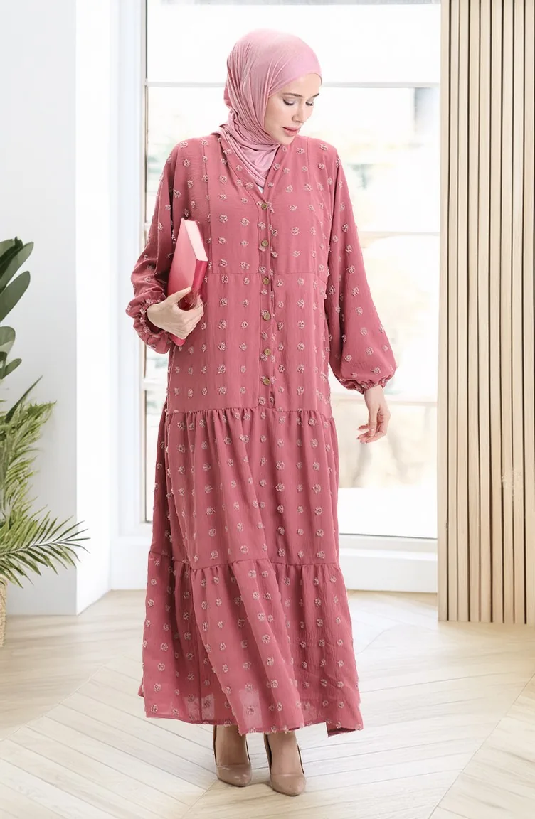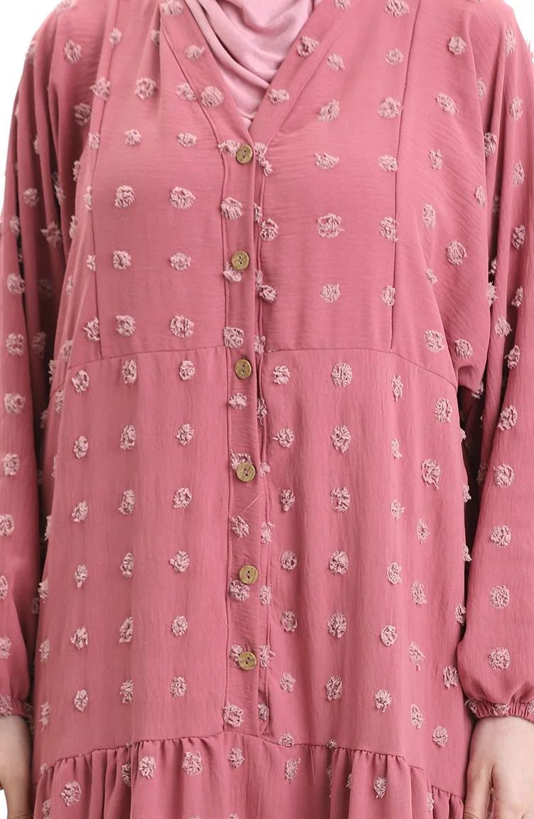 فستان من قماش الفيسكوز بنصف زر 0062-03 وردي باهت 0062-03