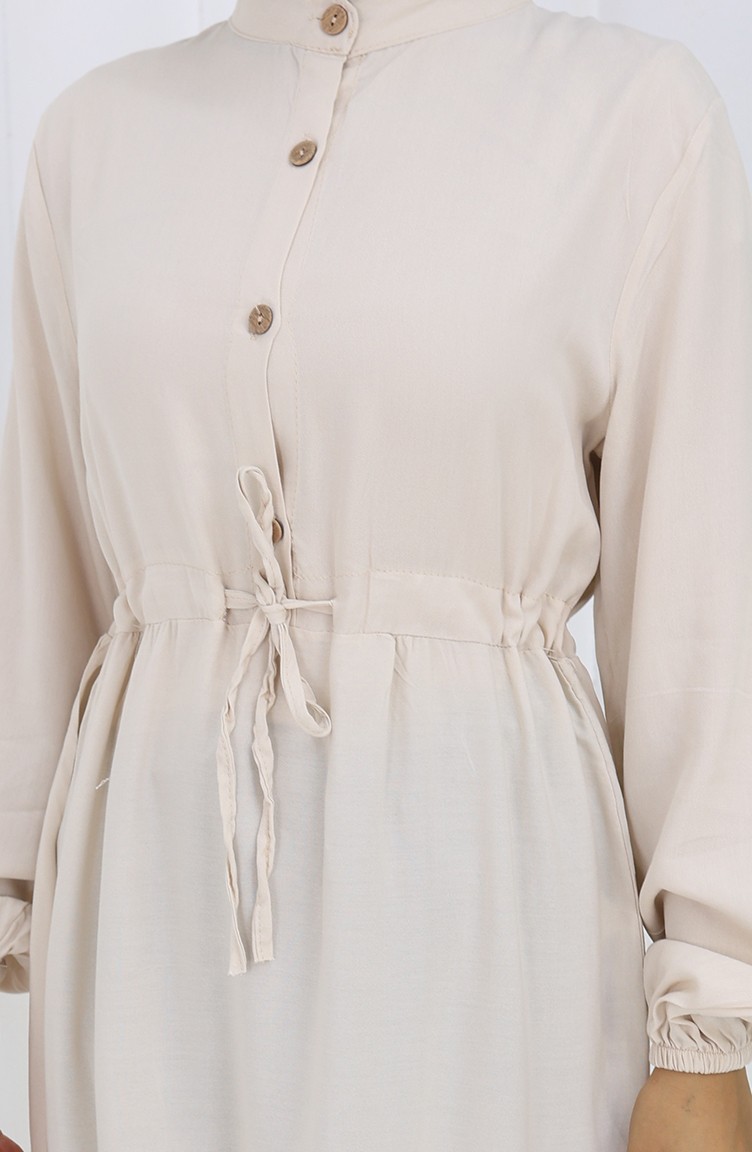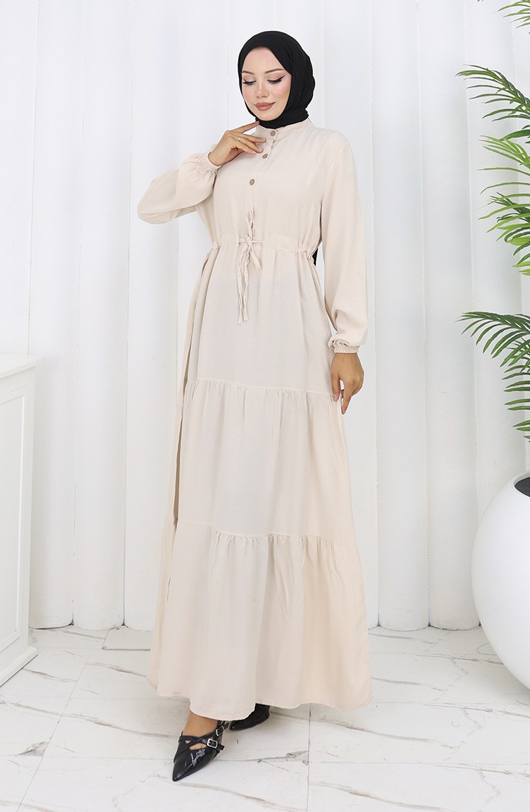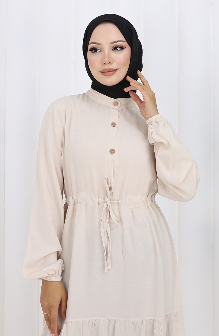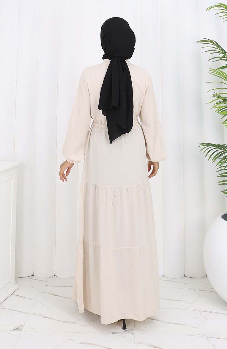 فستان من قماش الفيسكوز بأزرار نصفية 0085-19 بيج 0085-19