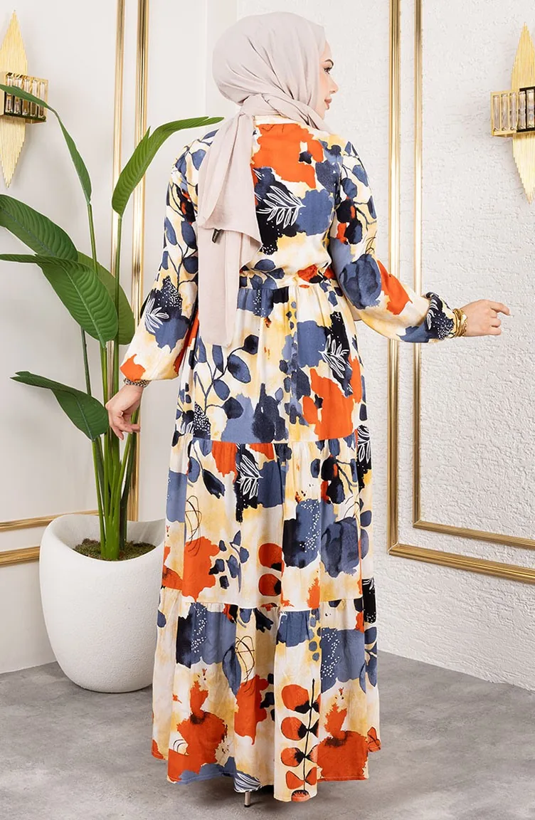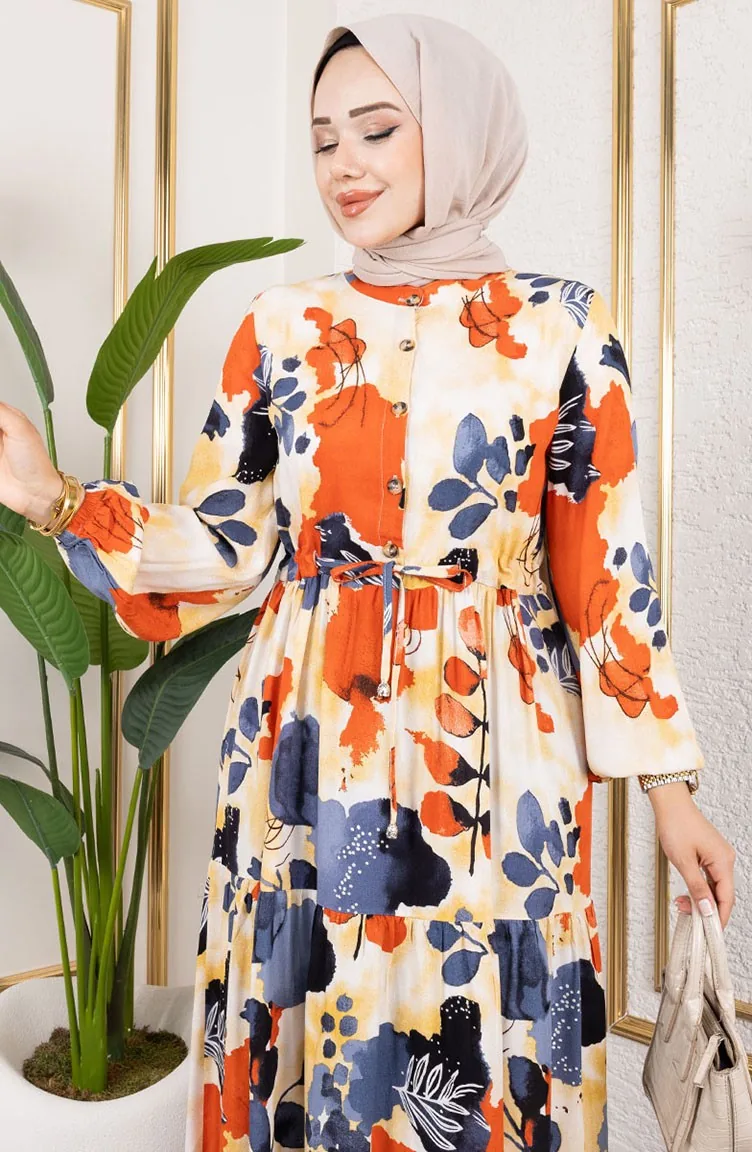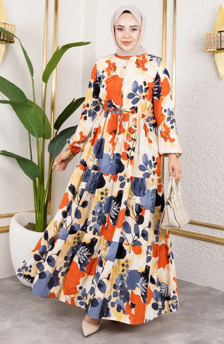 فسكوزي نوع من النسيج الصناعي ومريحة للاستخدام. صمم مع القماش المزخرف. استعملت الأزرار ليجعل المنتج سهولة الارتداء. استخدم الكم البيلاستيك. استعمل فيها الياقة الدائرية. مناسب لجميع المواسم. هناك مقاسات كبيرة.