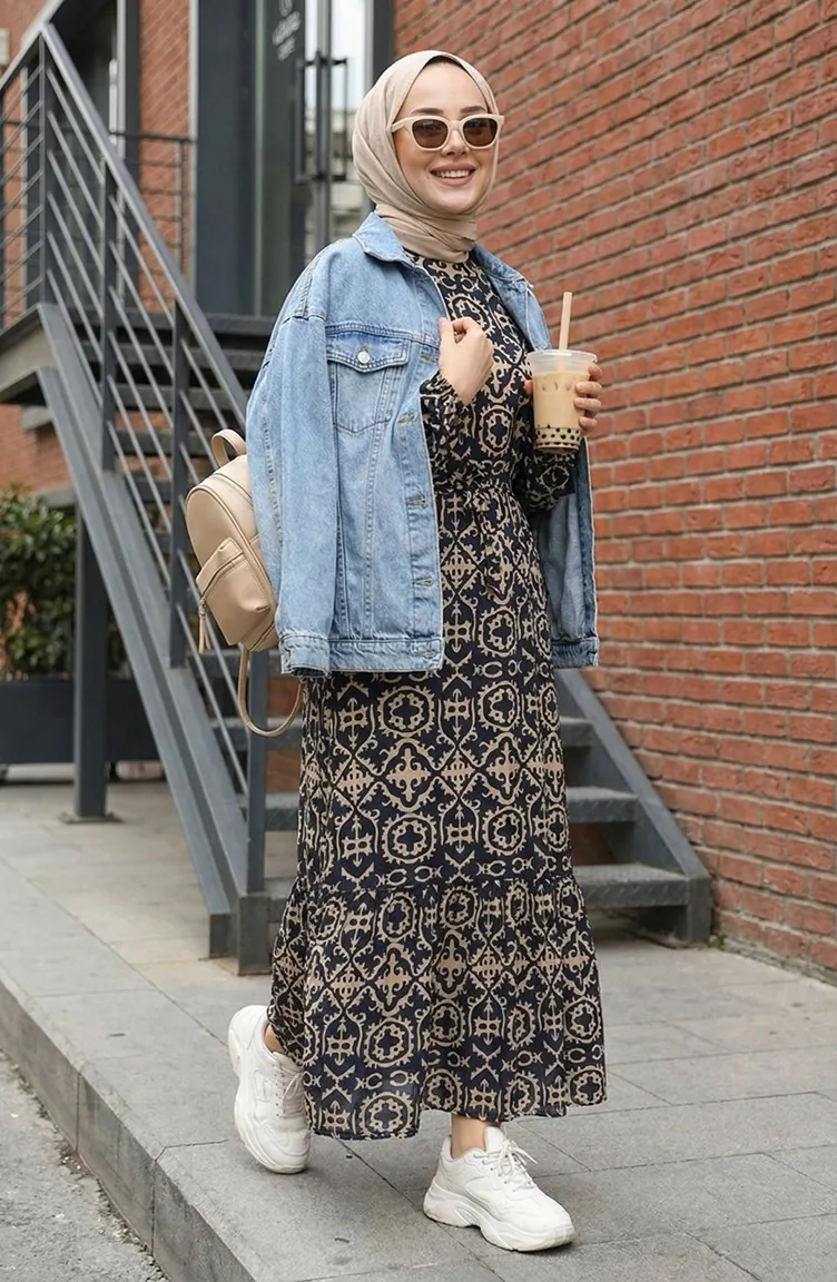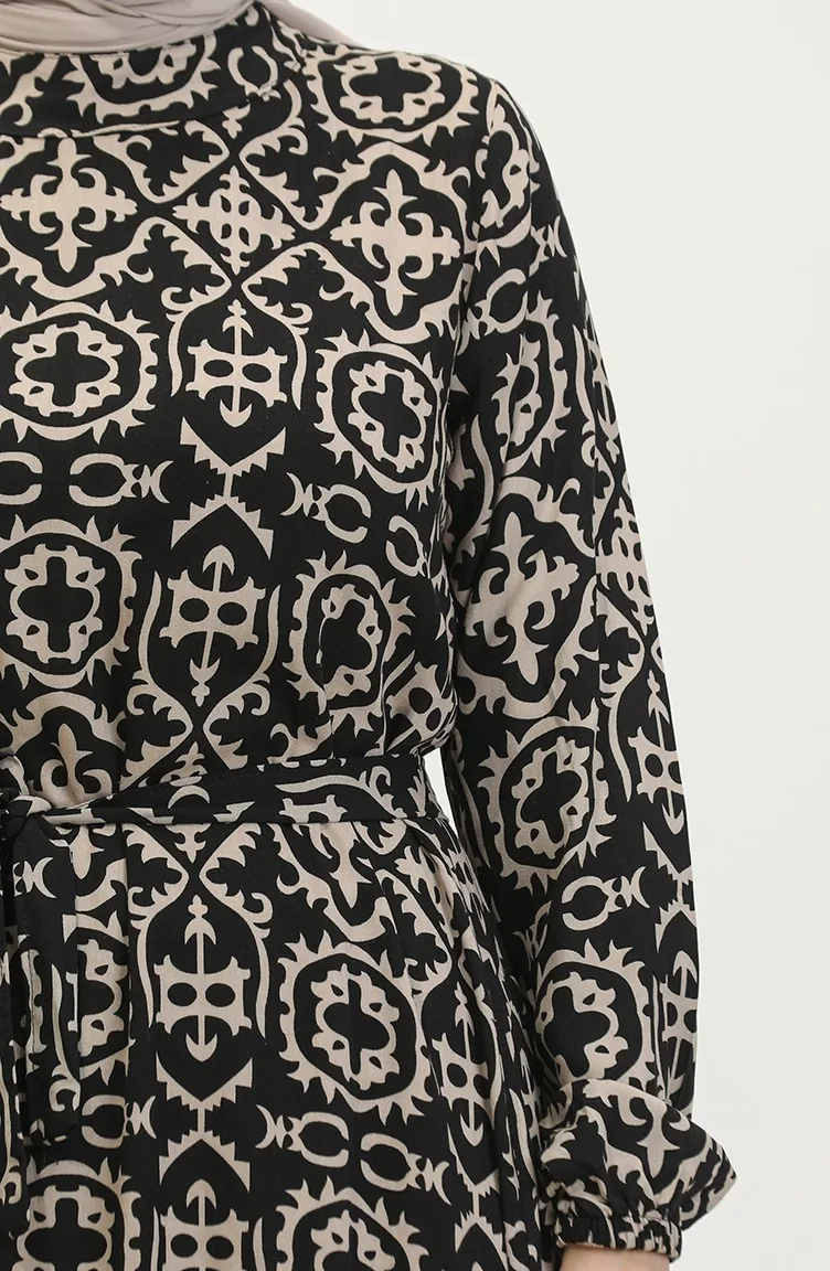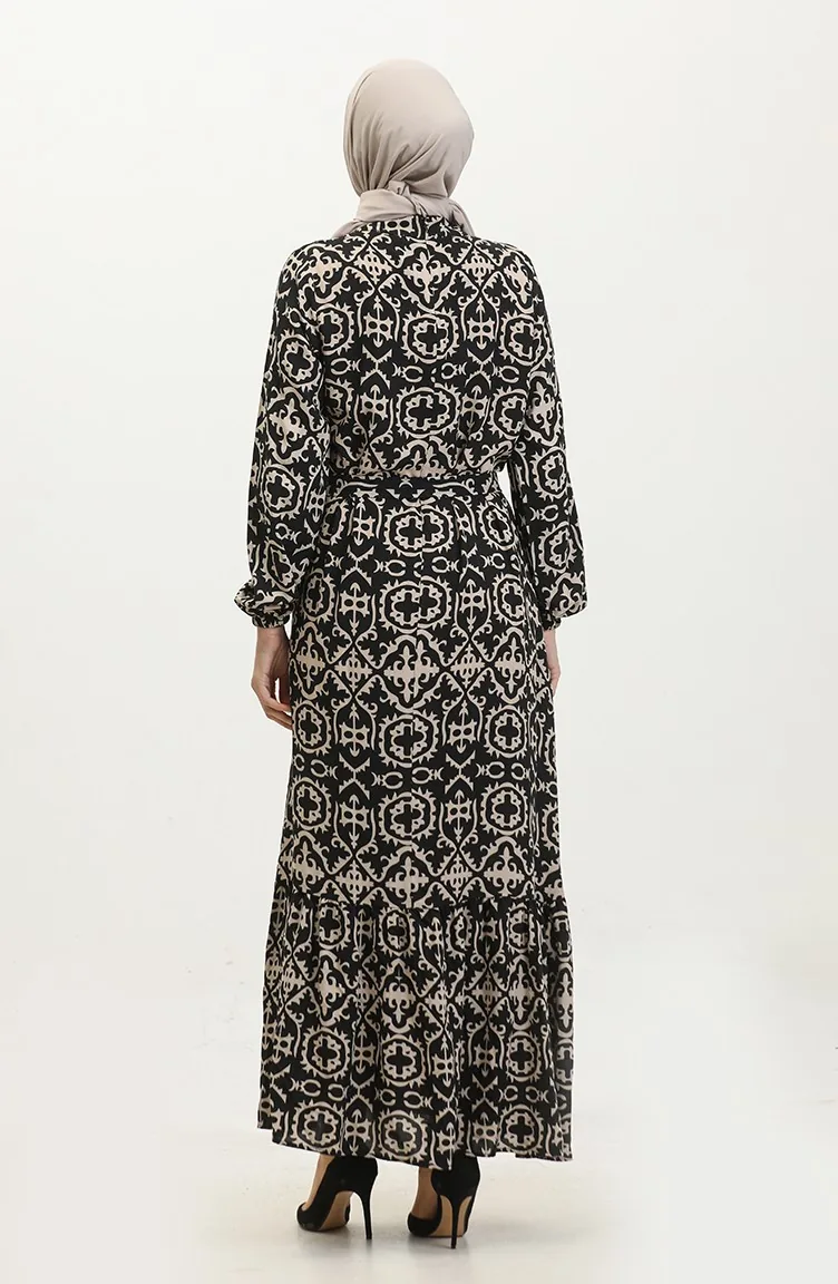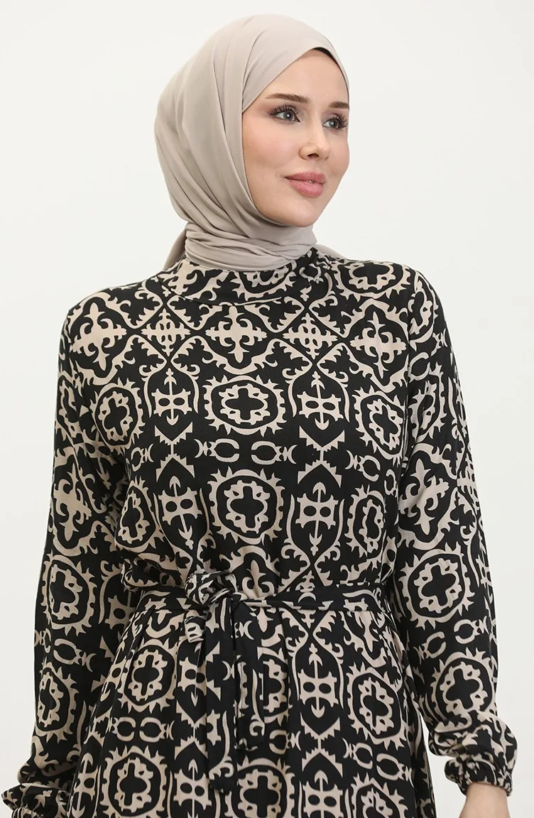 فستان فيسكوز منقوش 0362-03 أسود 0362-03