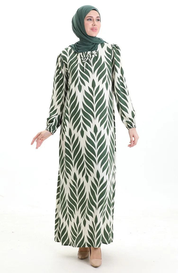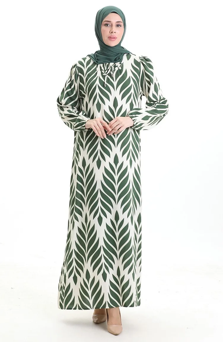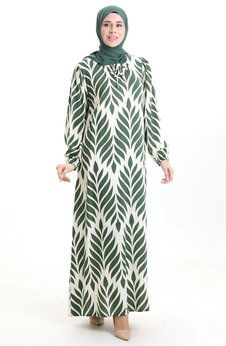 فستان فيسكوز برقبة مربعة 994585I-02 كاكي 994585I-02