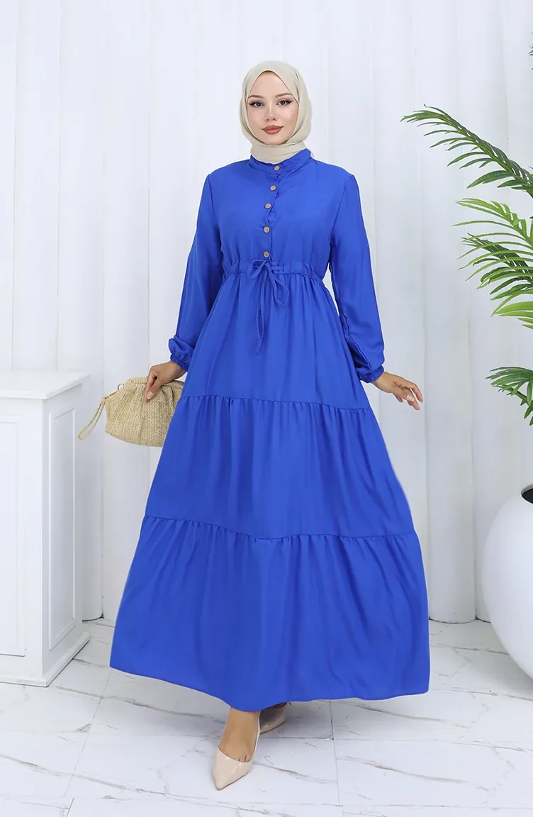 استخدم فيه اللون الأزرق الملكي. نسيج القطن لديه نسيج ماص. ذو مظهر سادة. استعملت الأزرار ليجعل المنتج سهولة الارتداء. استخدم الكم البيلاستيك. استعمل فيها الياقة الدائرية. مناسب لجميع المواسم. هناك مقاسات كبيرة.