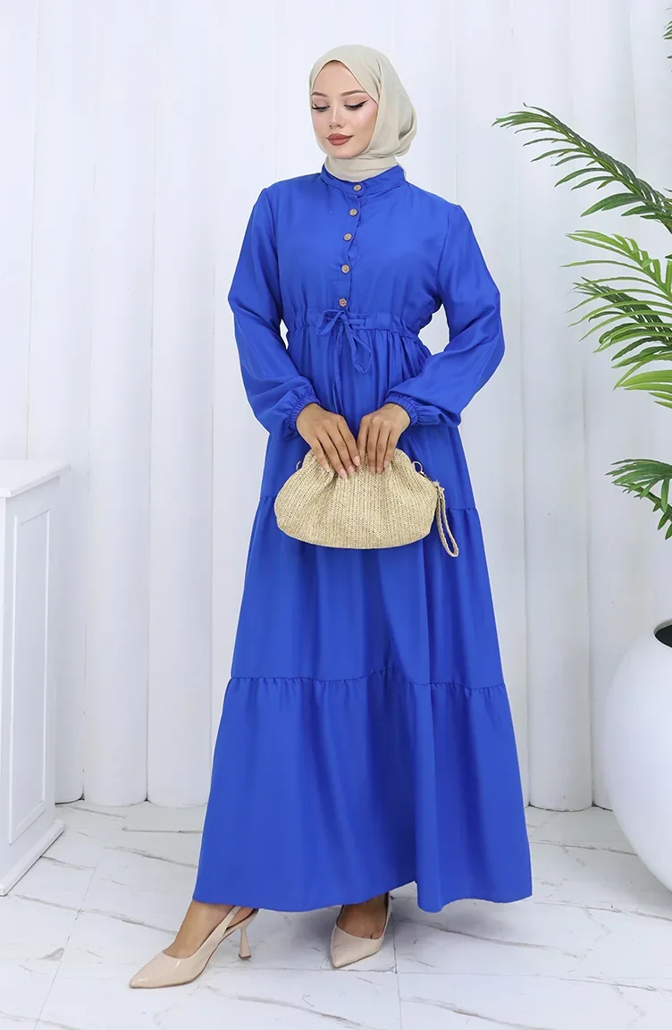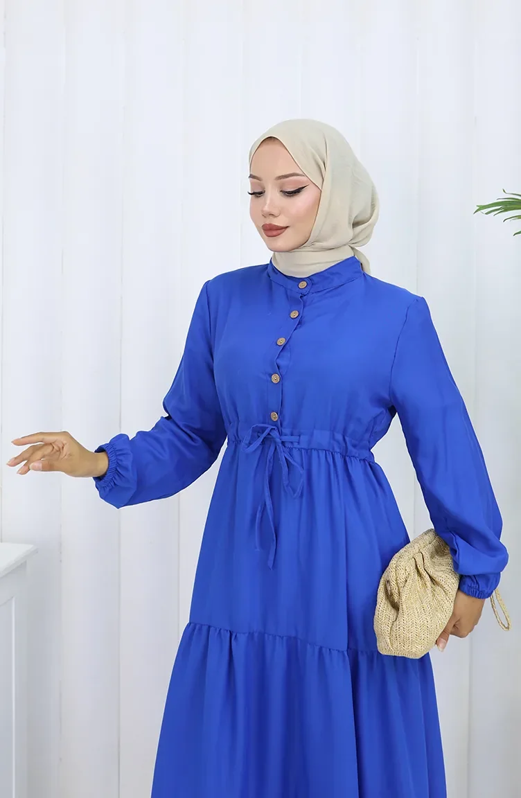 فستان بأزرار ورباط على الخصر 0128-03 ساكس 0128-03