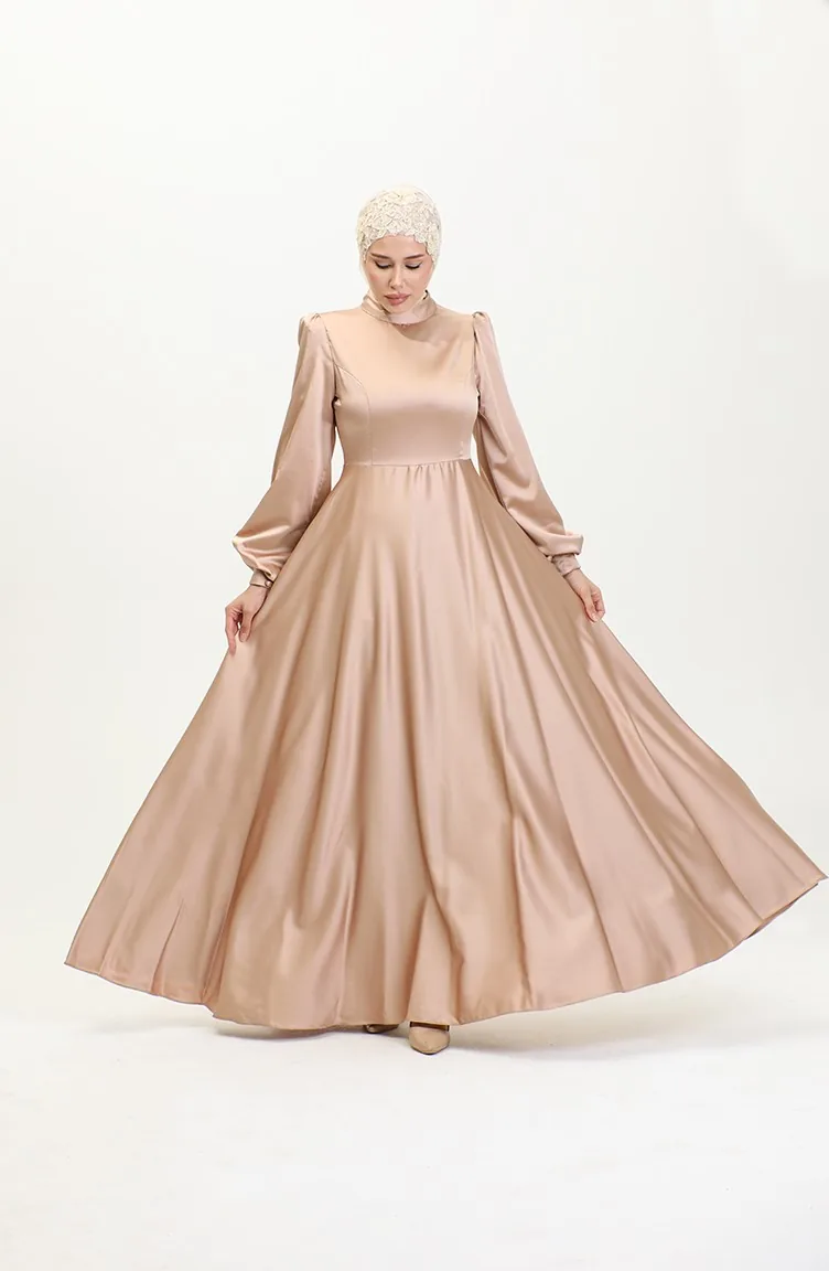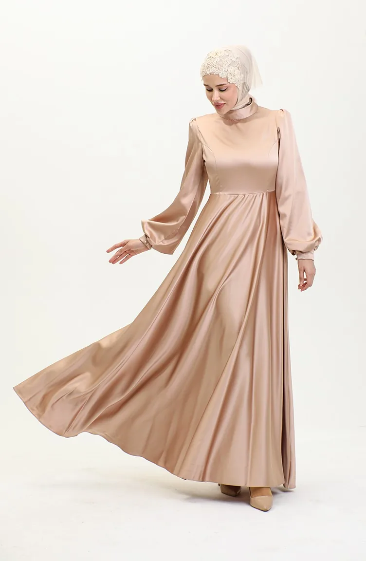 فستان سهرة ساتان للمحجبات 52895-01 فيزون 52895-01