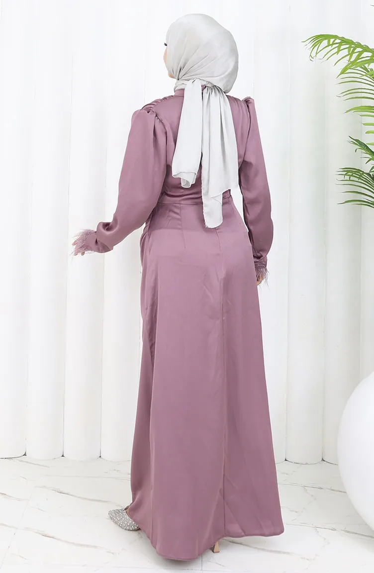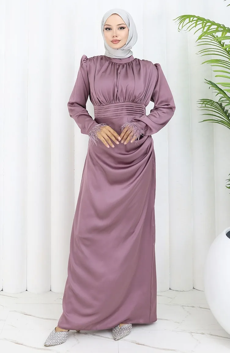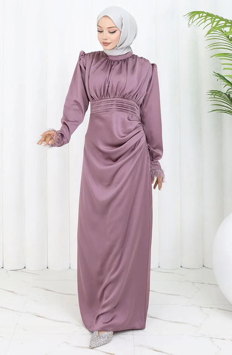فستان سهرة ساتان 6374-02 وردي فاتح 6374-02