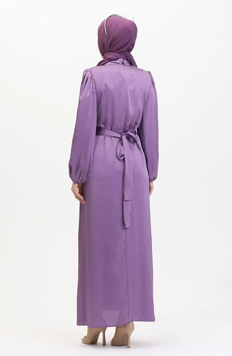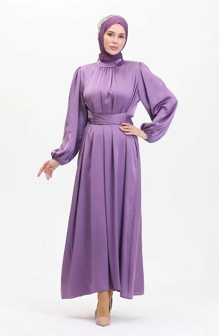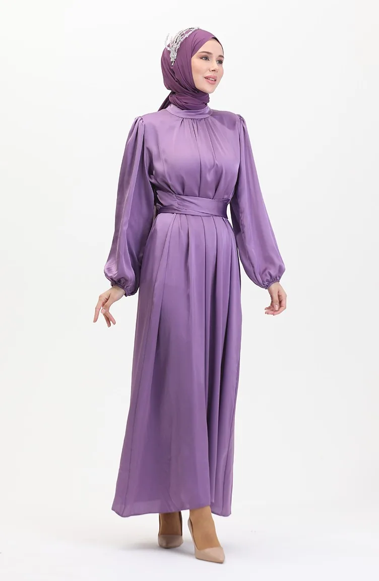 فستان سهرة ساتان 6372-05 بنفسجي فاتح 6372-05
