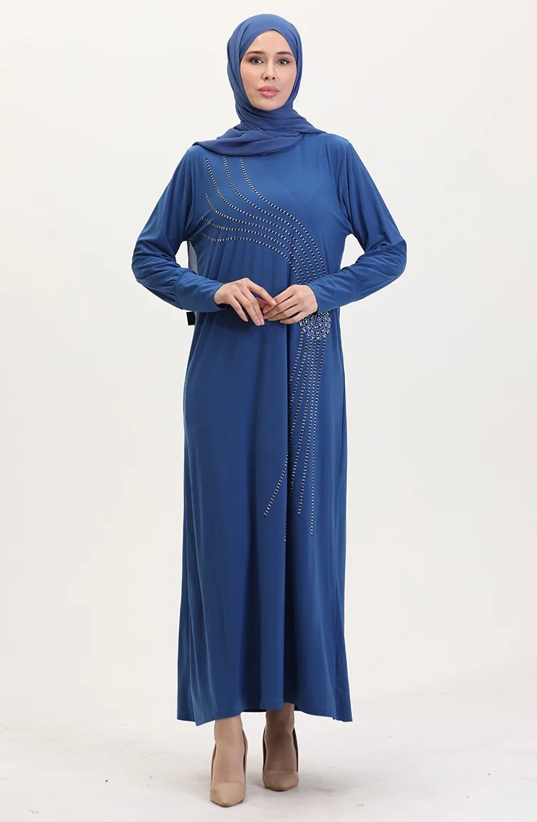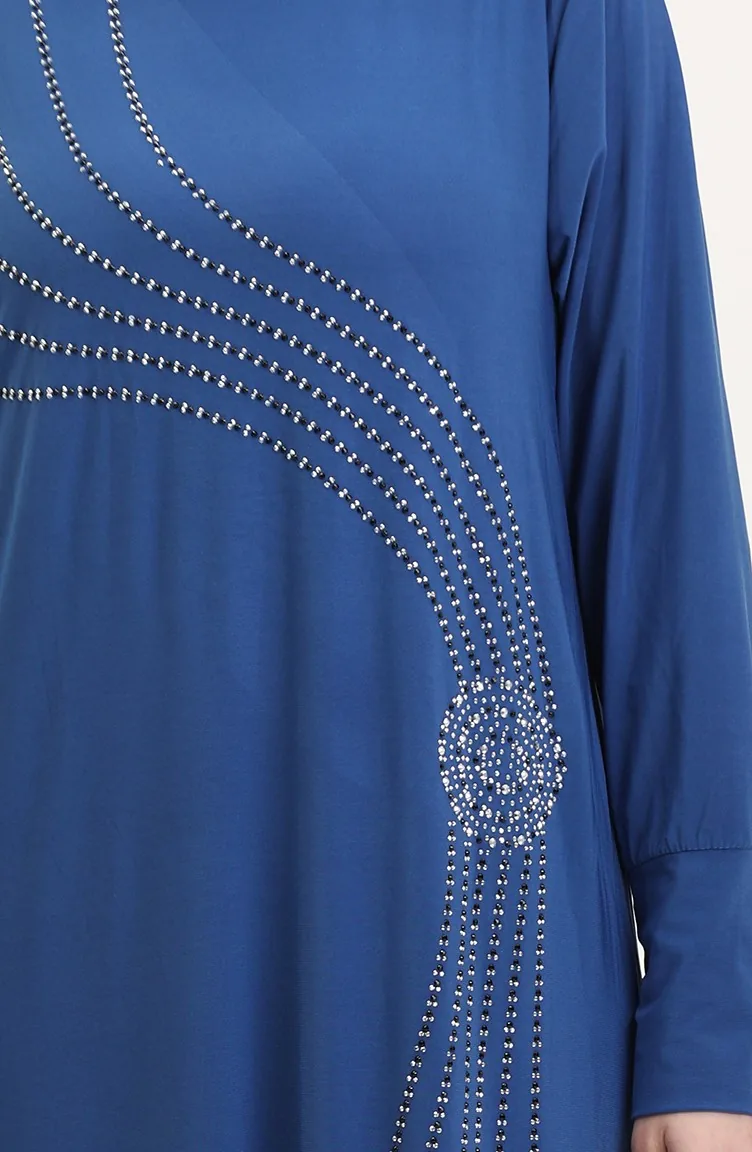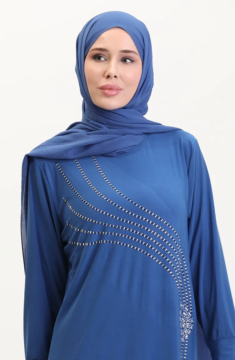 نيلي اللون استخدامها. ذو مظهر سادة. استعمل الأحجار لمظهر جميل. من الممكن استعمال المنتج بدون ياقة مع كل ملابس. مناسب لجميع المواسم. هناك مقاسات كبيرة.
