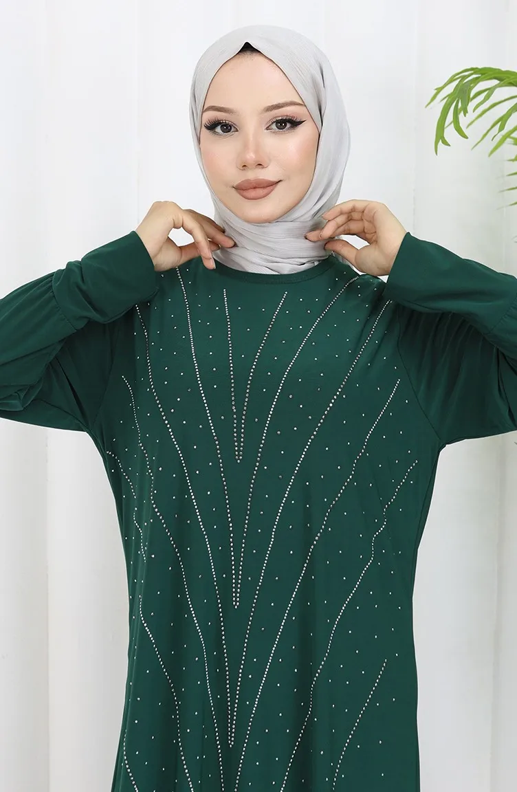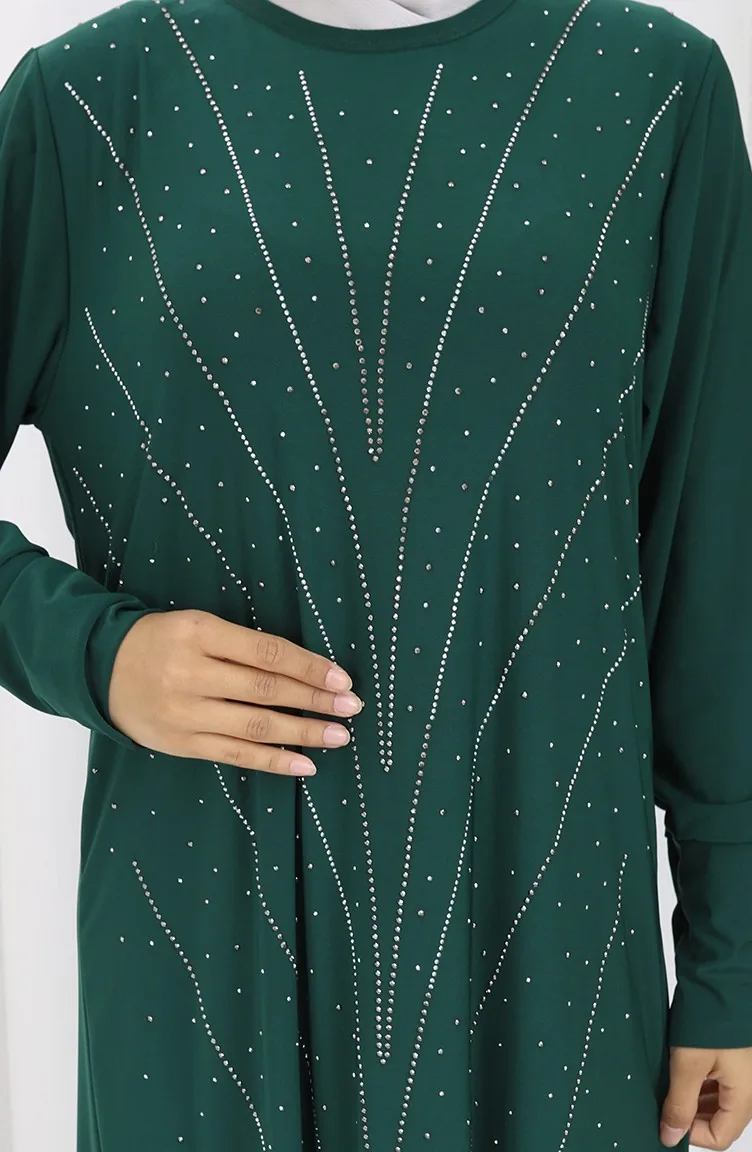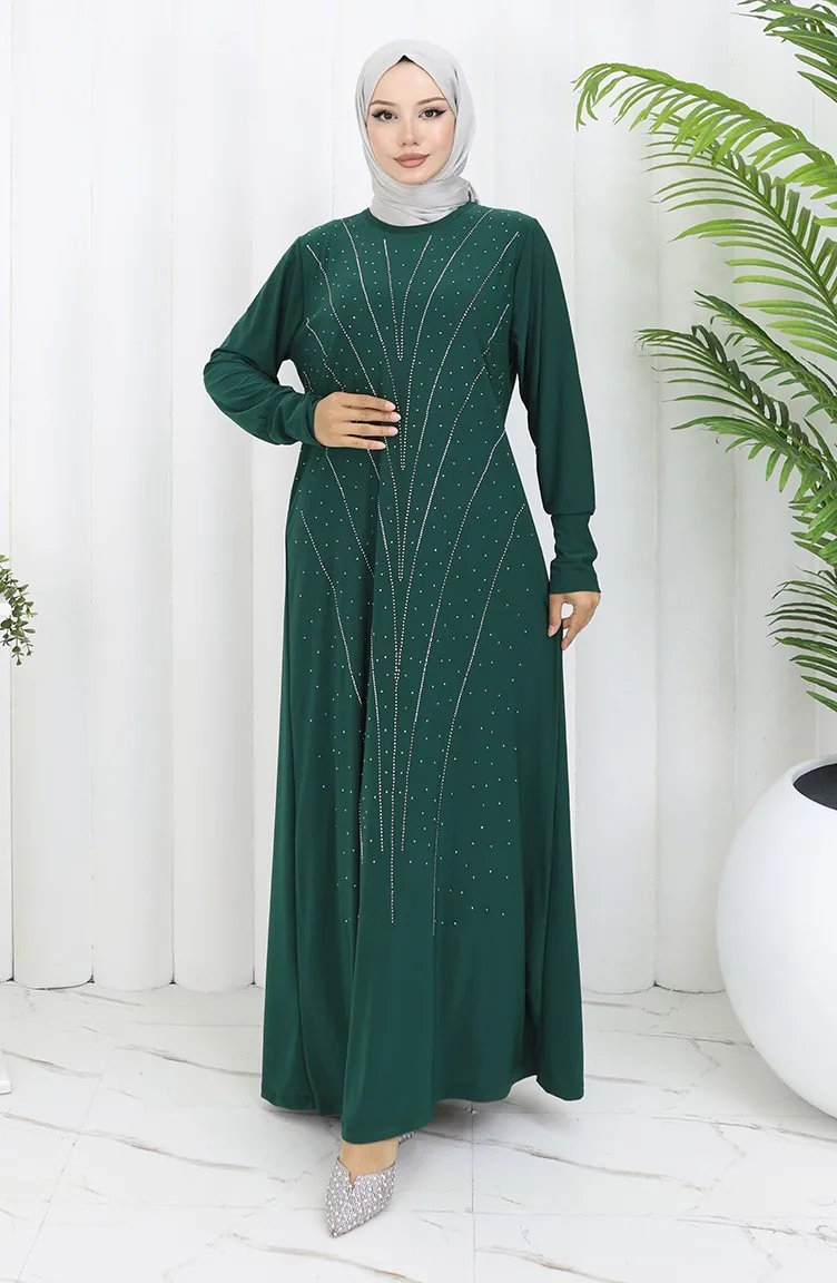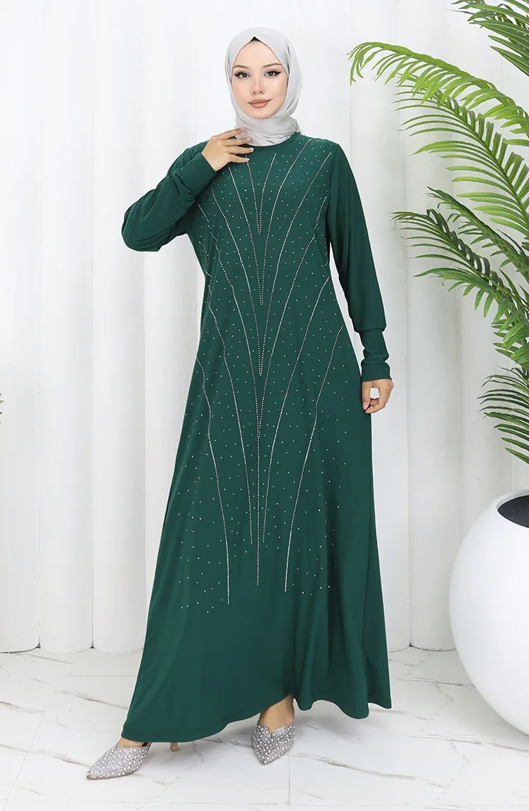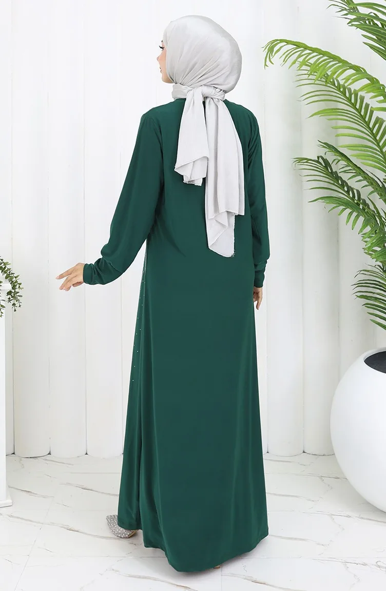 فستان سهرة من القماش الرملي الحجري 2061-03 أخضر زمردي 2061-03