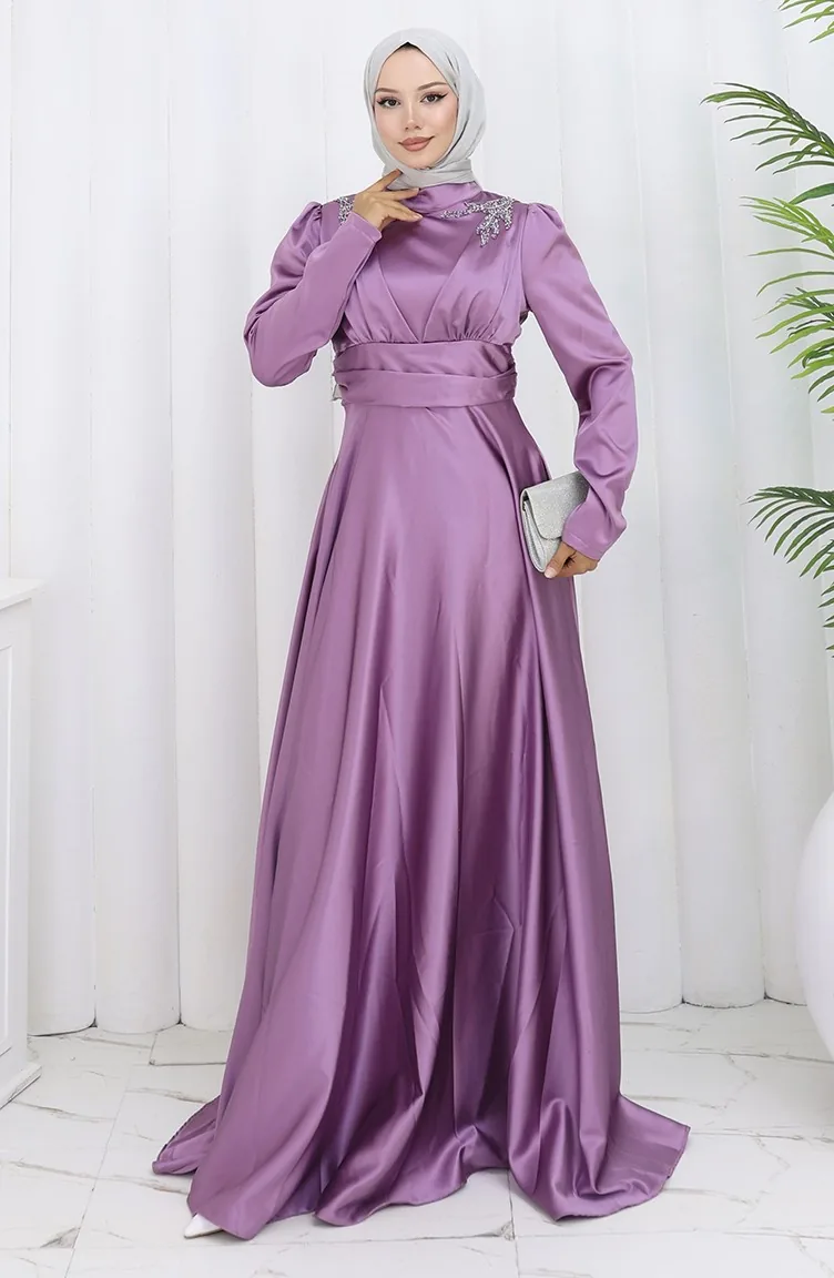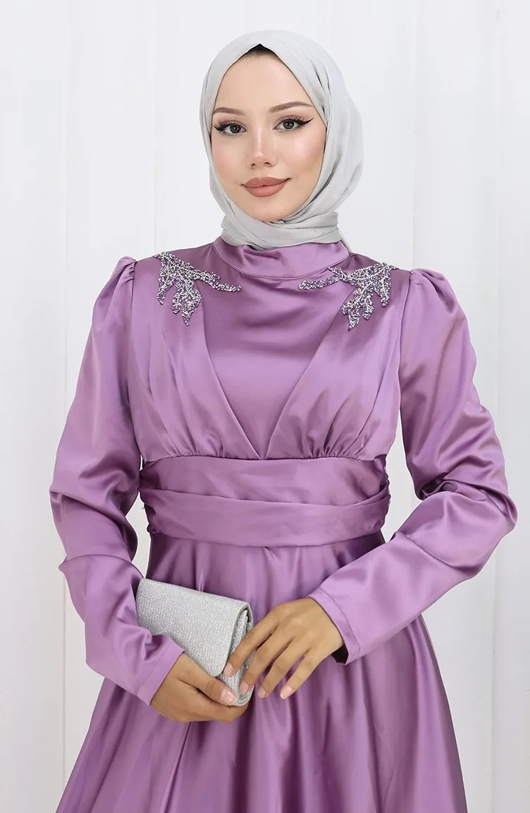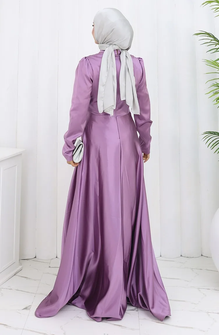 فستان سهرة ساتان 52880-04 بنفسجي فاتح 52880-04