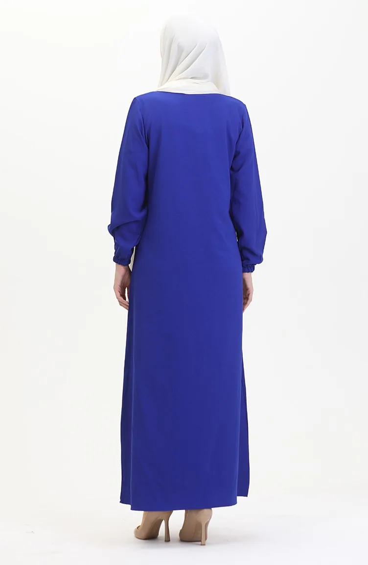 استخدم فيه اللون الأزرق الملكي. ذو مظهر سادة. المنتج ذو الاستخدام بدون تبطين. استخدم الكم البيلاستيك. من الممكن استعمال المنتج بدون ياقة مع كل ملابس. مناسب لجميع المواسم. هناك مقاسات كبيرة.