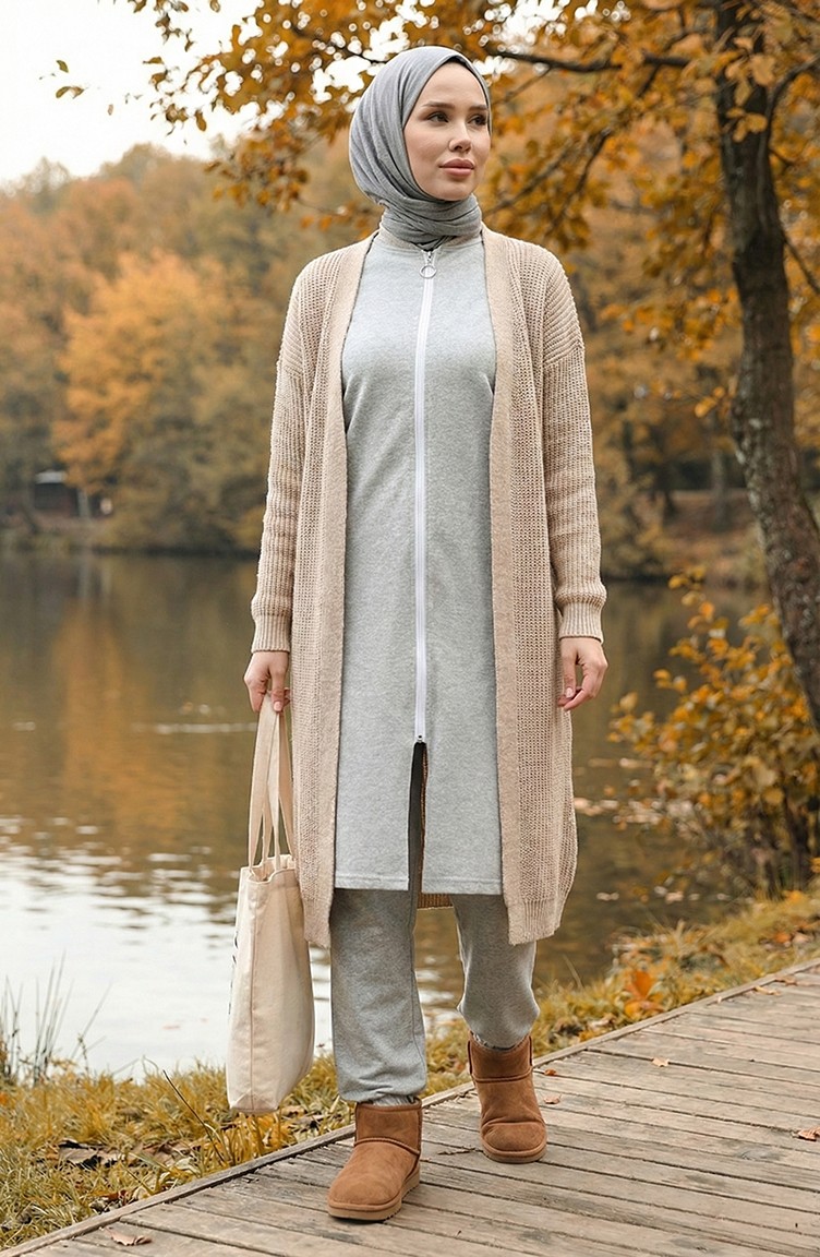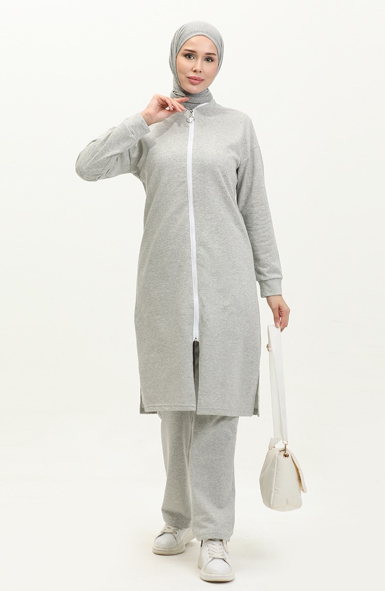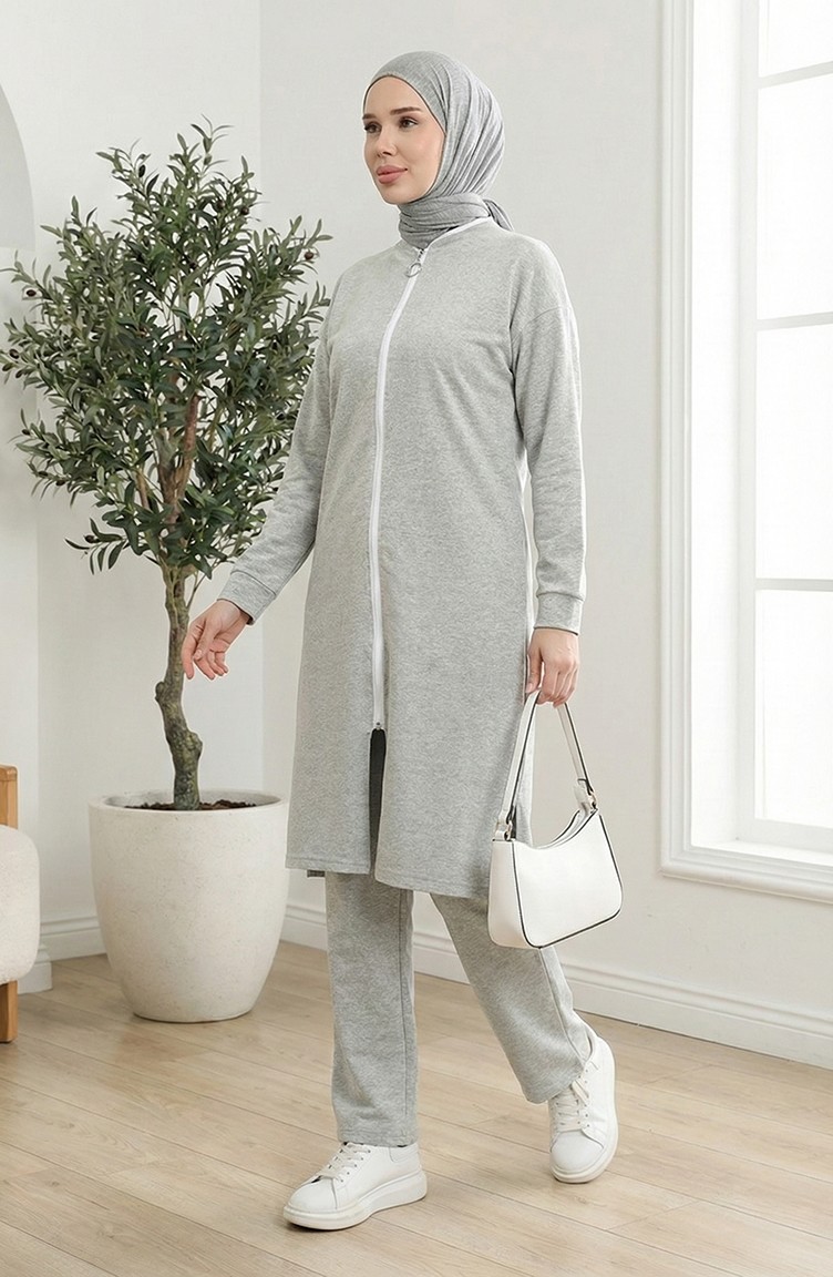 طقم رياضي بسحاب 3044-03 رمادي 3044-03