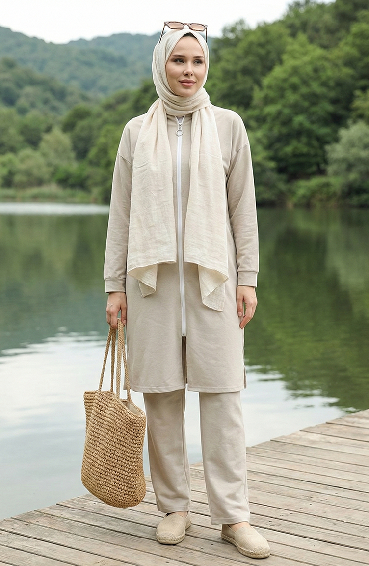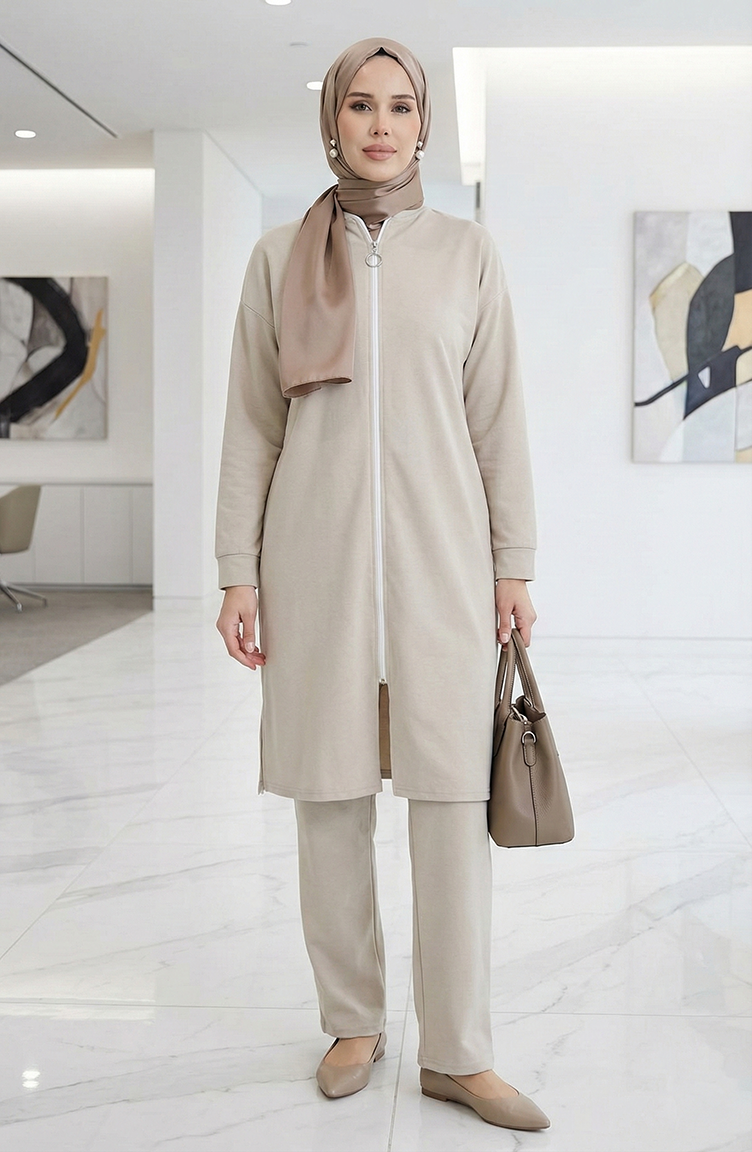طقم رياضي بسحاب 3044-07 بيج 3044-07