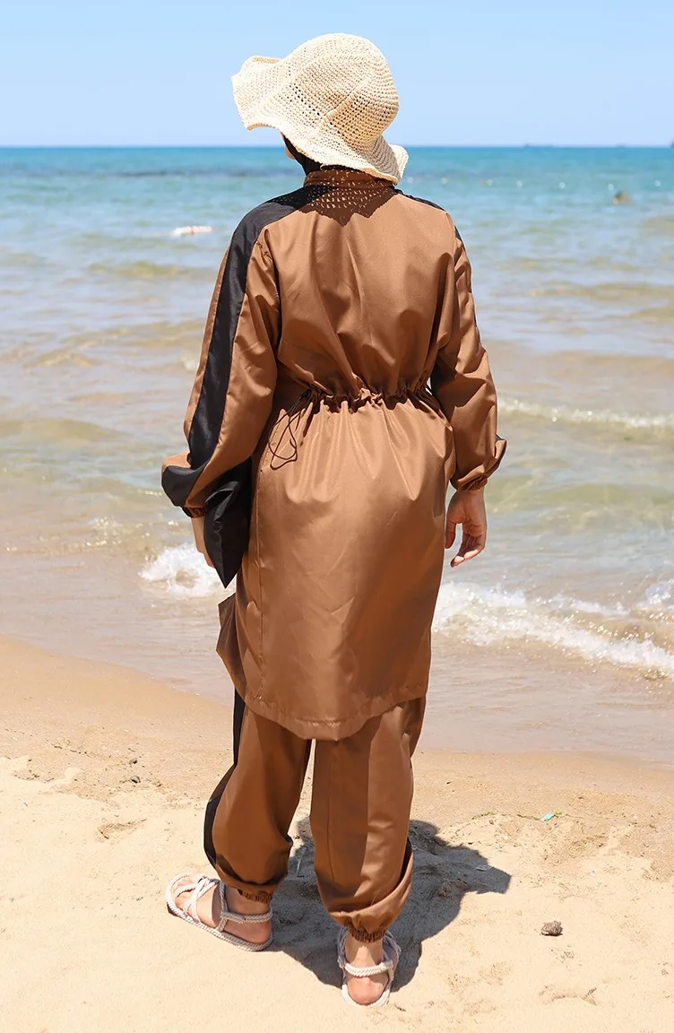 ملابس سباحة محتشمة مزينة بسحّاب 6565-03 بني 6565-03
