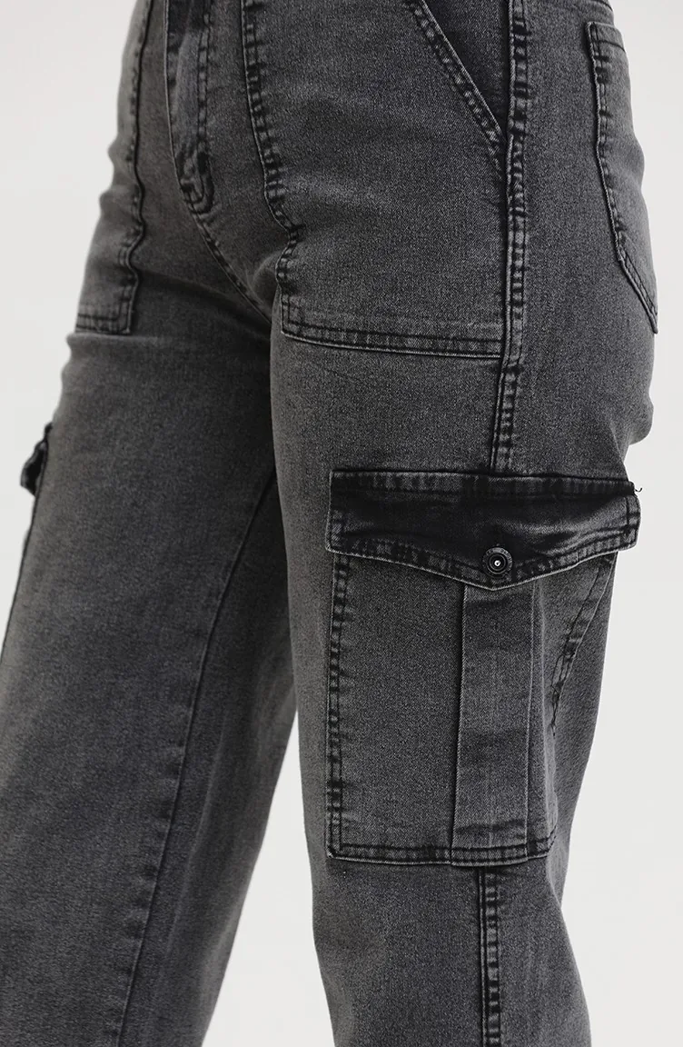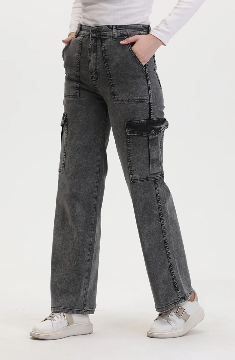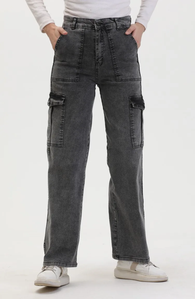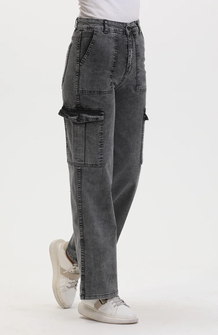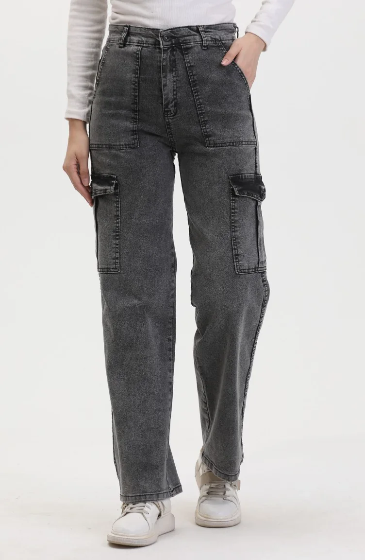 بنطال جينز بتفاصيل جيوب 2828-05 لون فحمي 2828-05