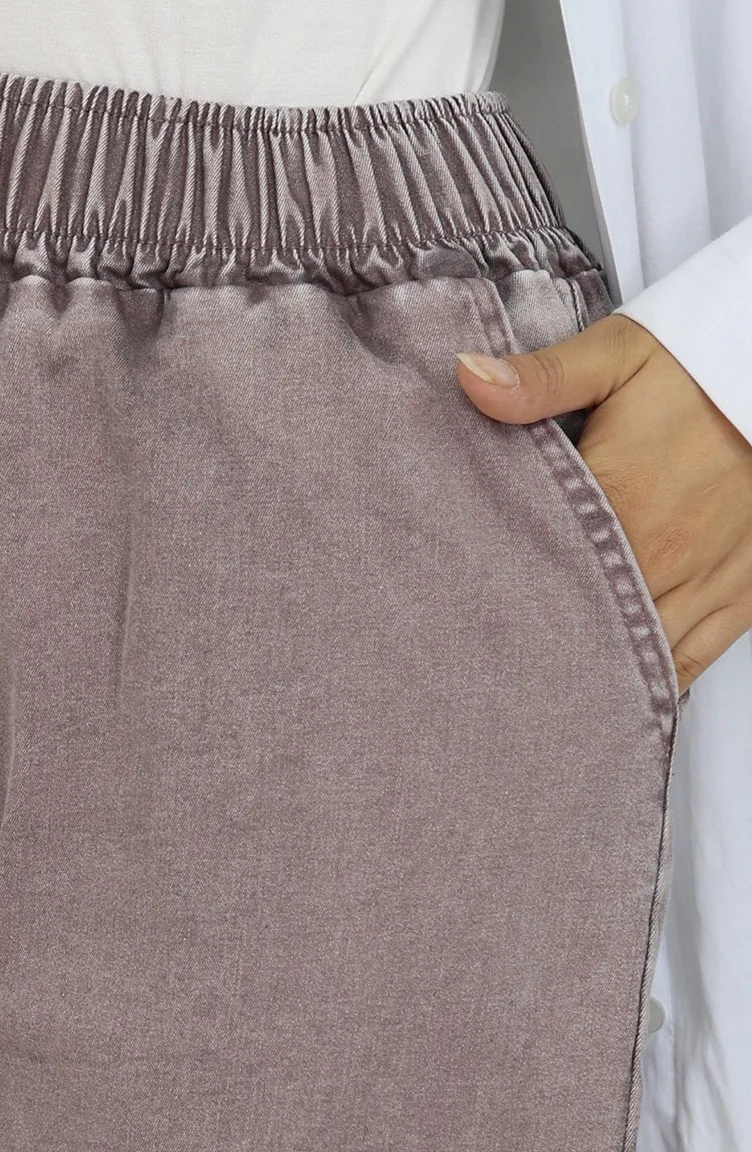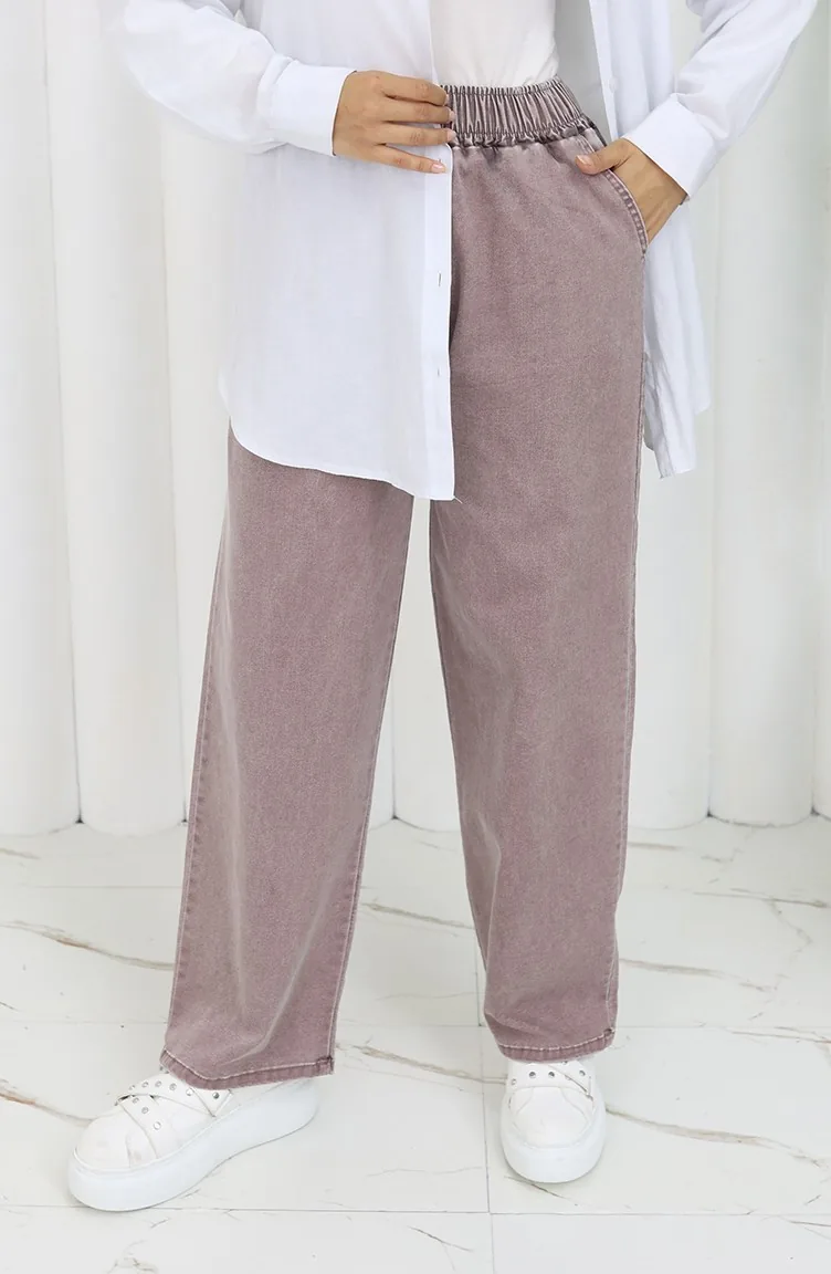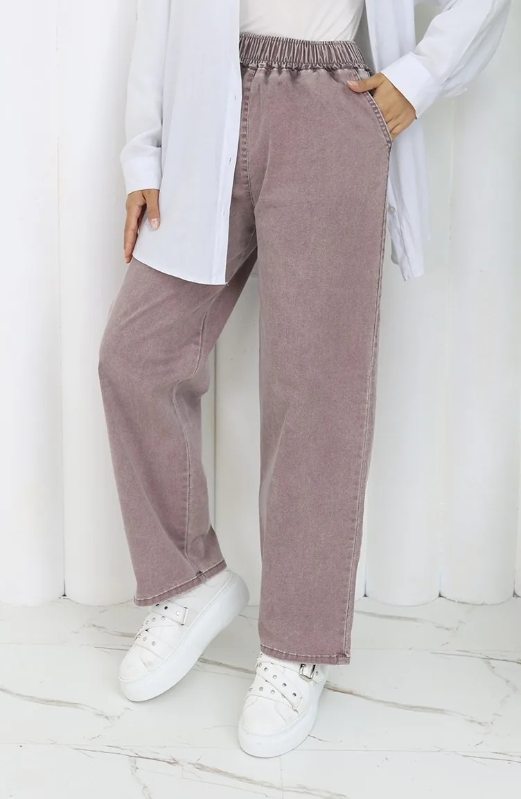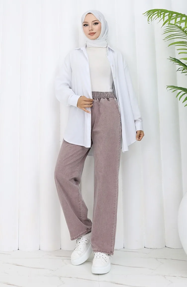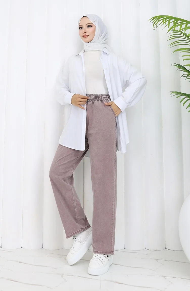 بنطال جينز بتصميم مطاط عند الخصر 9633-05 لون وردي داكن 9633-05