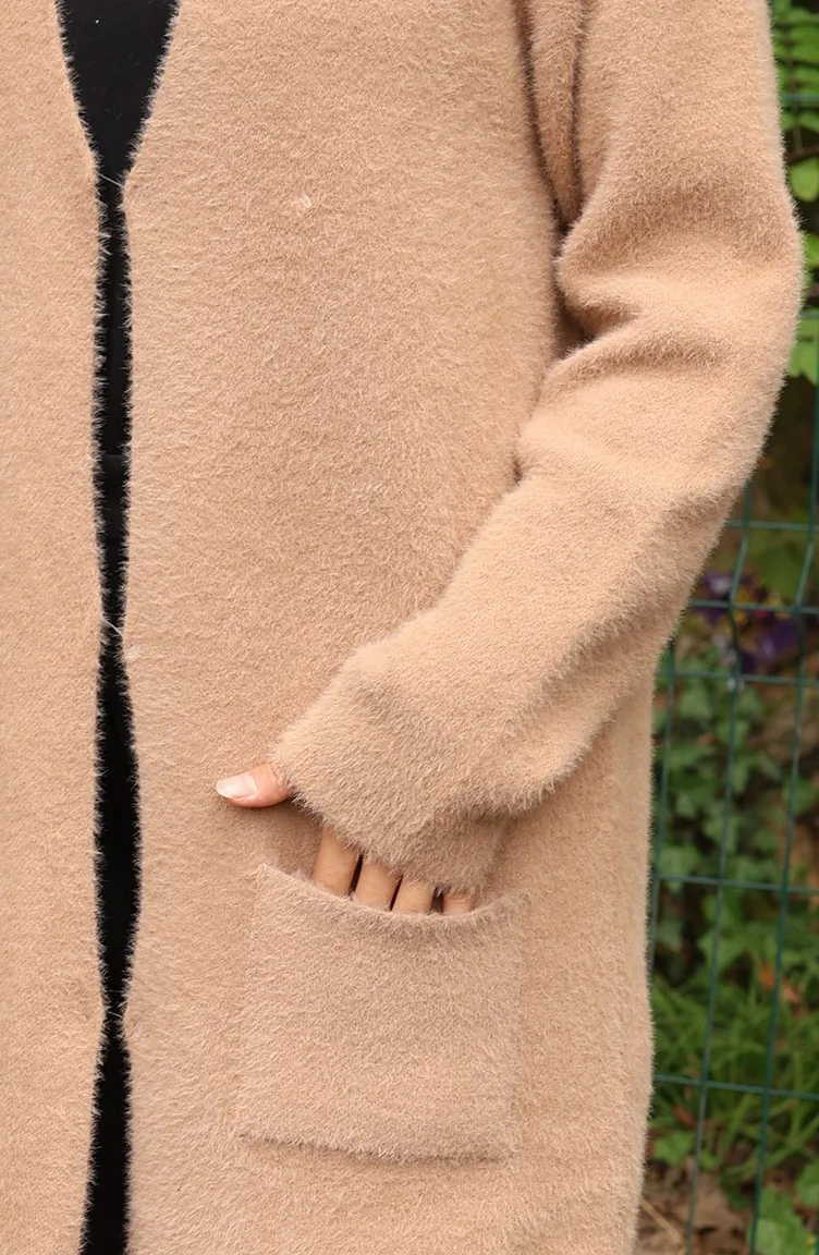 كارديجان جيب محبوك 0412-01 بلون القهوة والحليب 0412-01