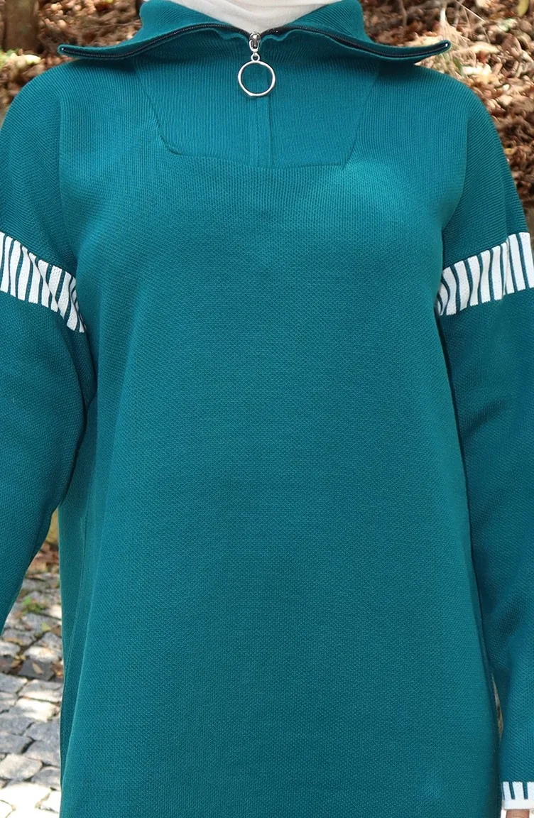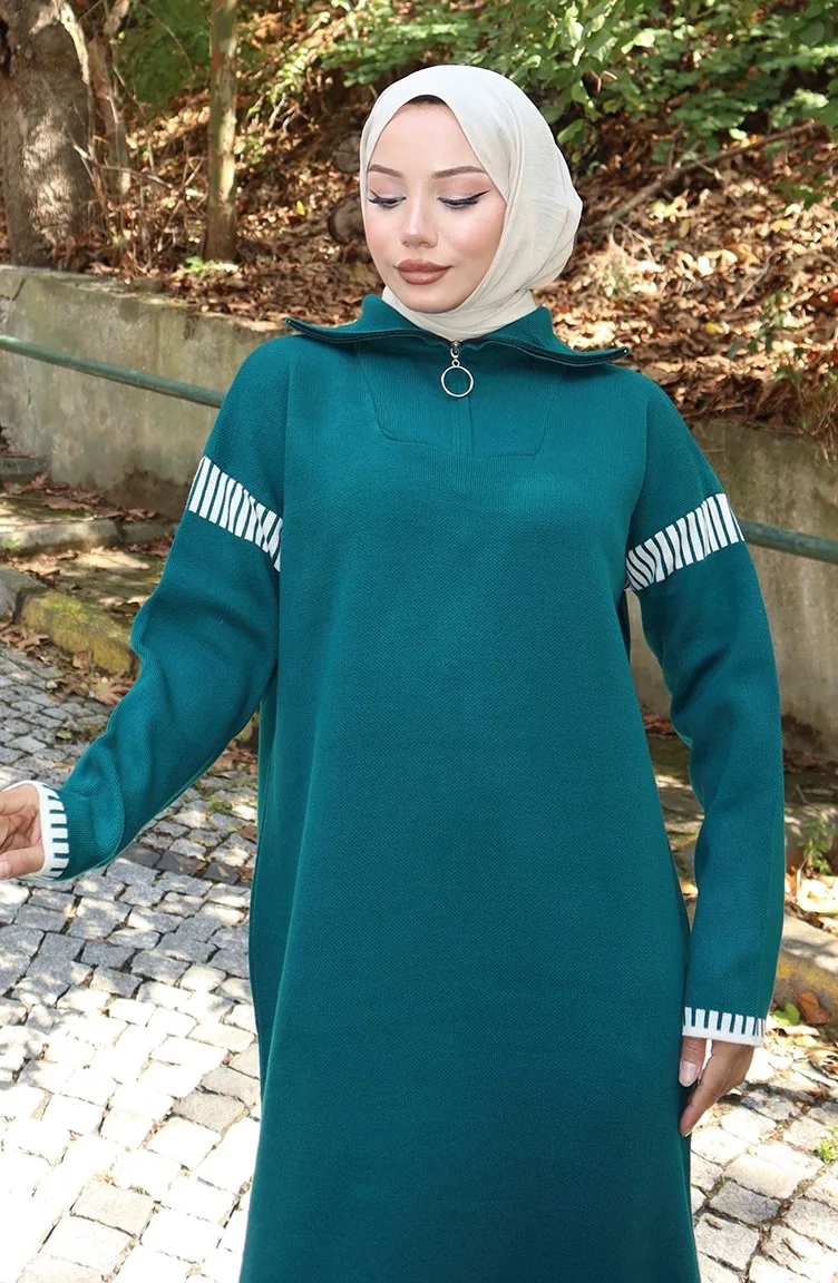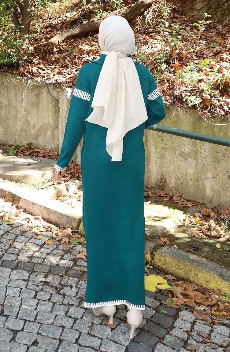 فستان محبوك بياقة مدورة مزين 0508-07 بترولي 0508-07