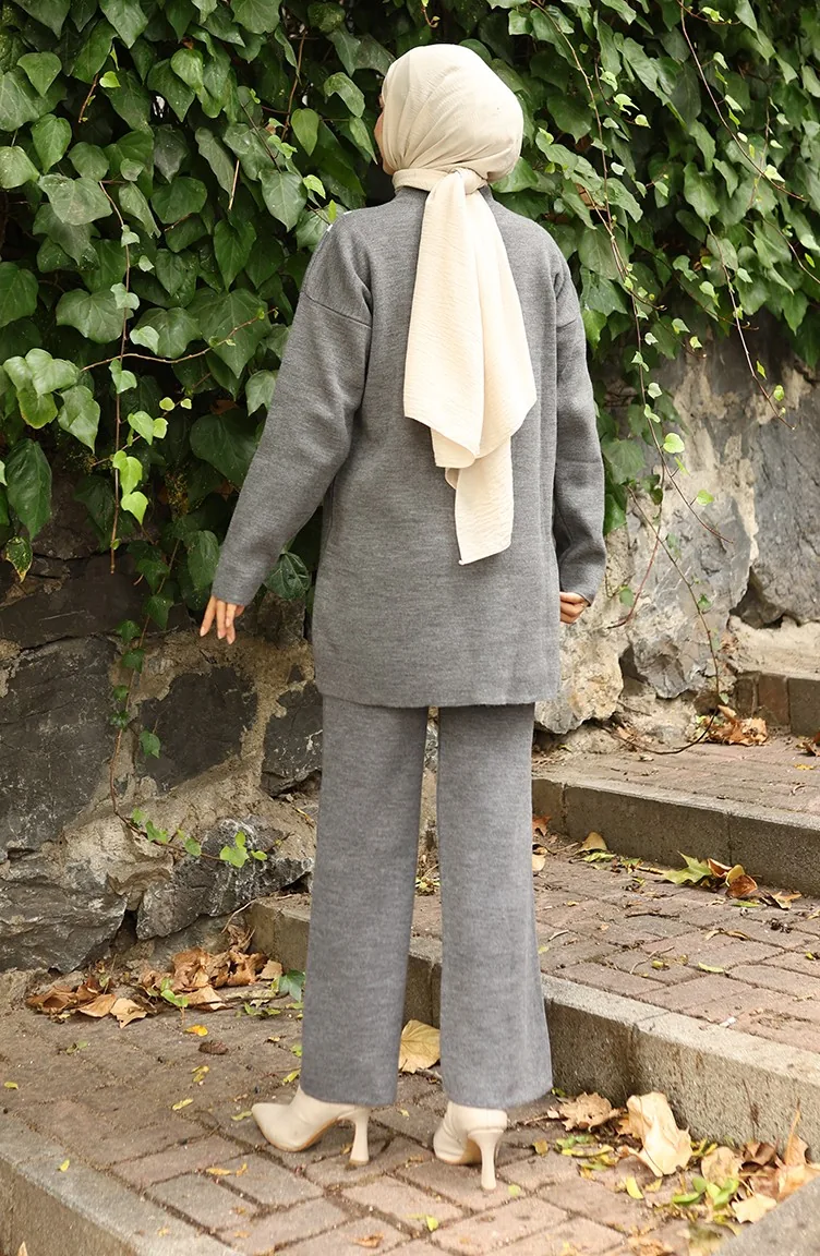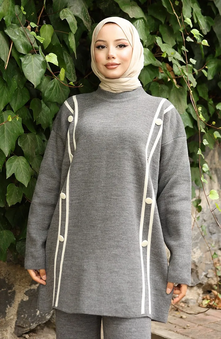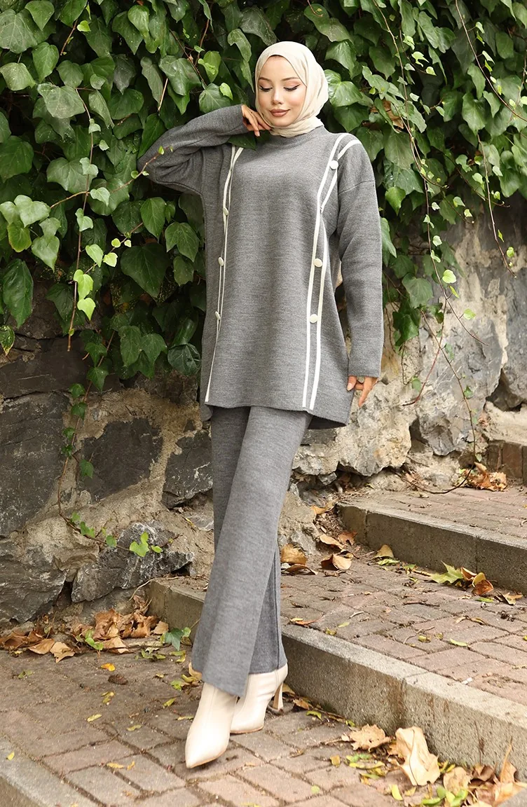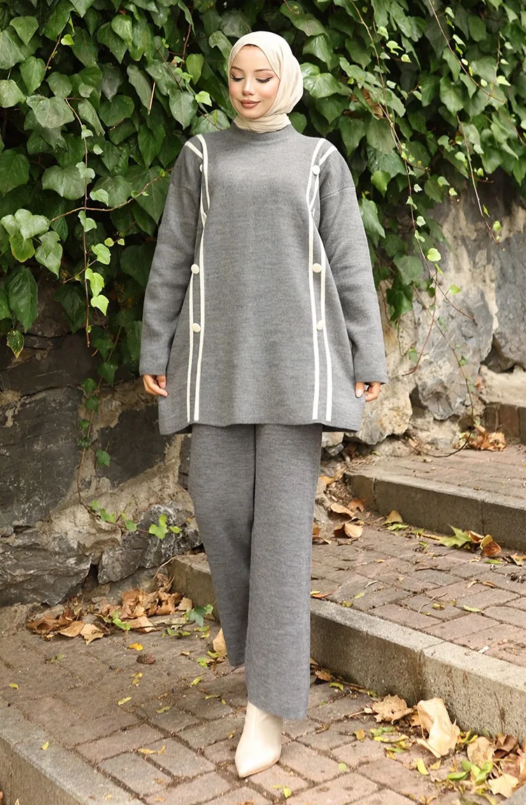 بدلة محبوكة من قطعتين، بنطلون تونك بأزرار، رمادي، 1128-06 1128-06