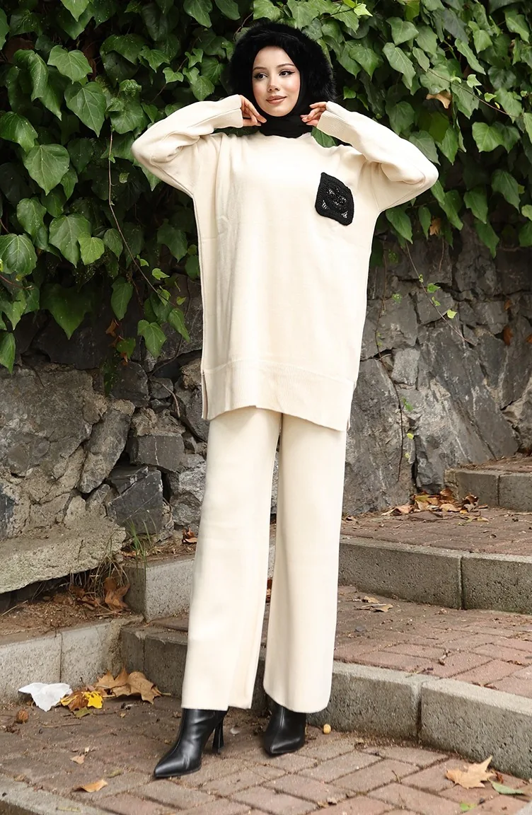 بدلة محبوكة من قطعتين، بنطلون، تونيك، 1029-05 بيج 1029-05