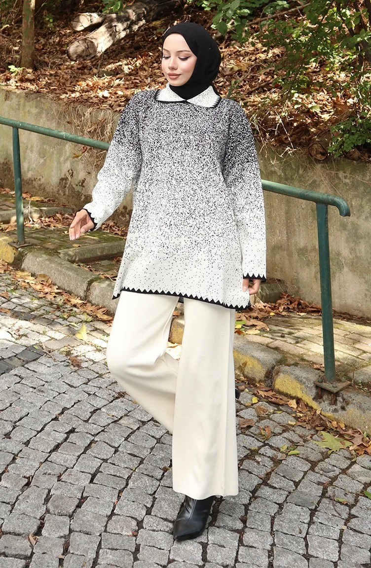 صممه النسيج الاكريليك. ذو مظهر سادة. التونيك عند لبسه مع قطعة اخرى تعطي تلاؤما جميلا. مصممة من القماش السميك. القياس التي في الصورة هي قياس العارضة.