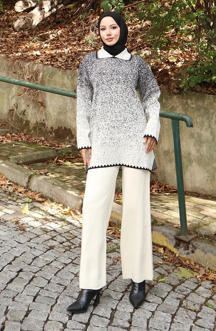 بدلة محبوكة من قطعتين، بنطلون، تونيك، 1123-04 بيج 1123-04