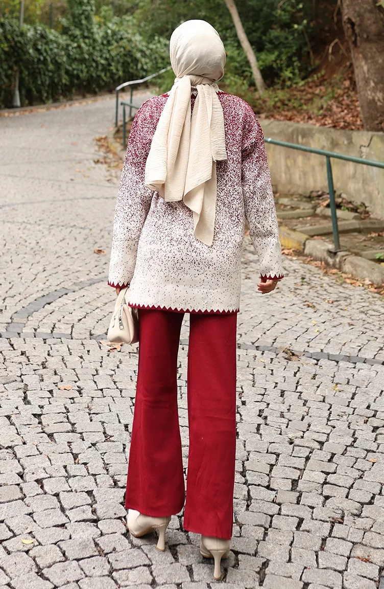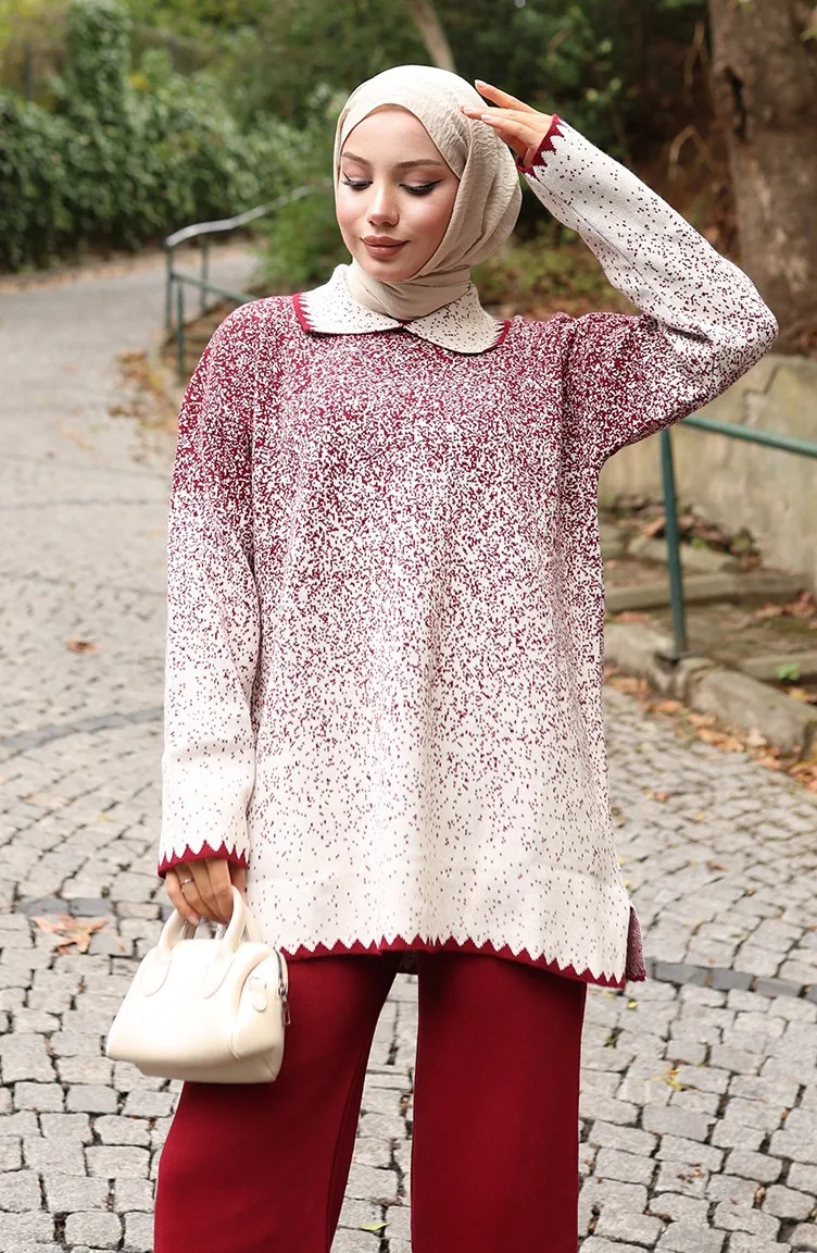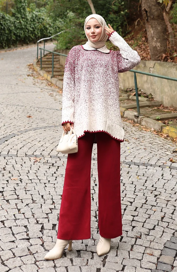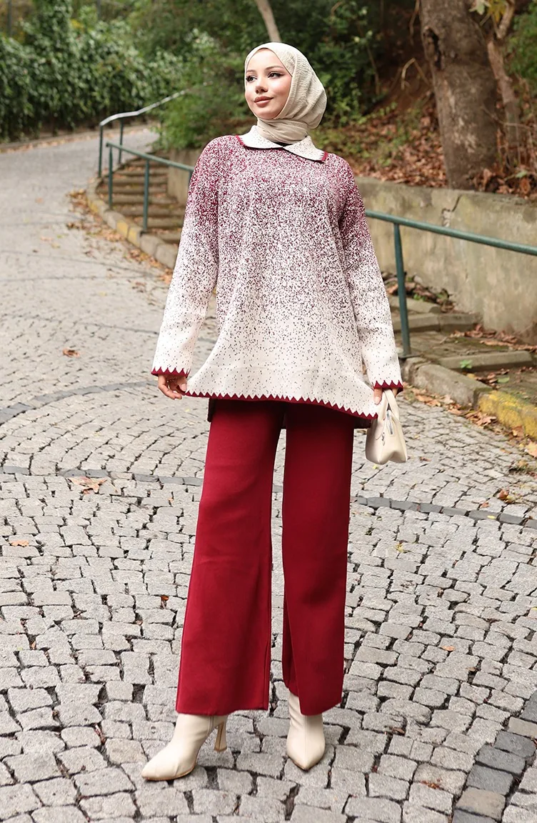 بدلة محبوكة من قطعتين، بنطلون، تونيك، لون أحمر قاتم، 1123-05 1123-05