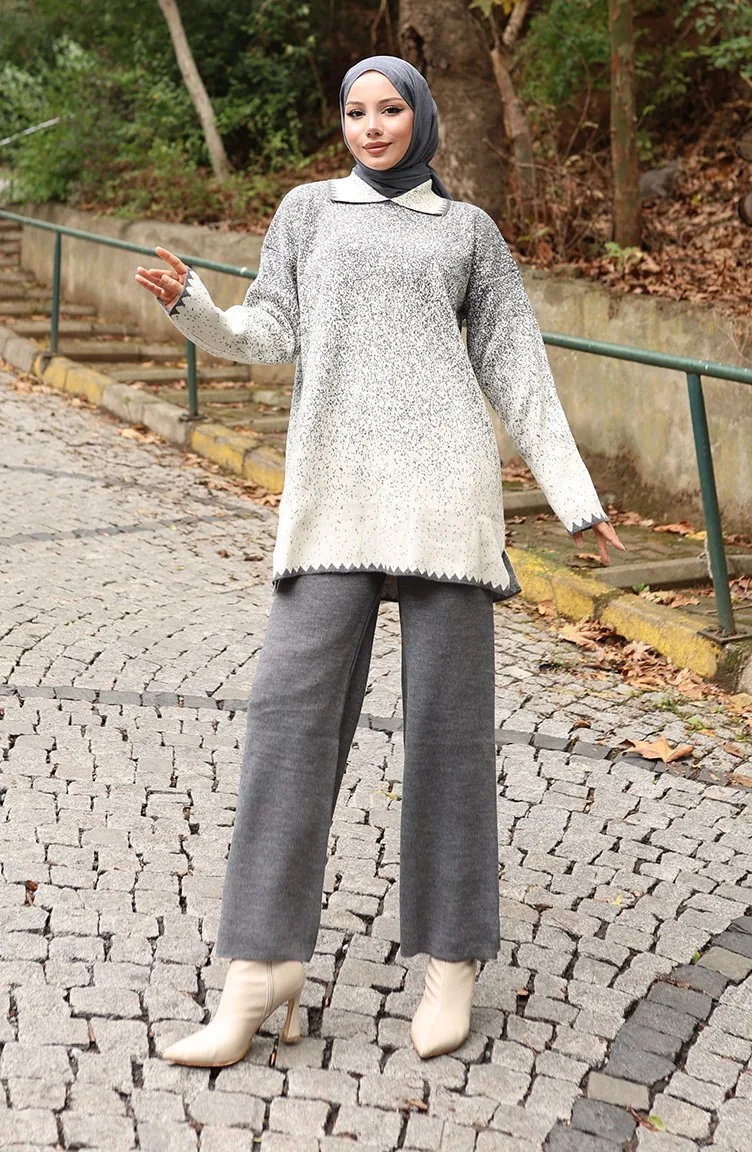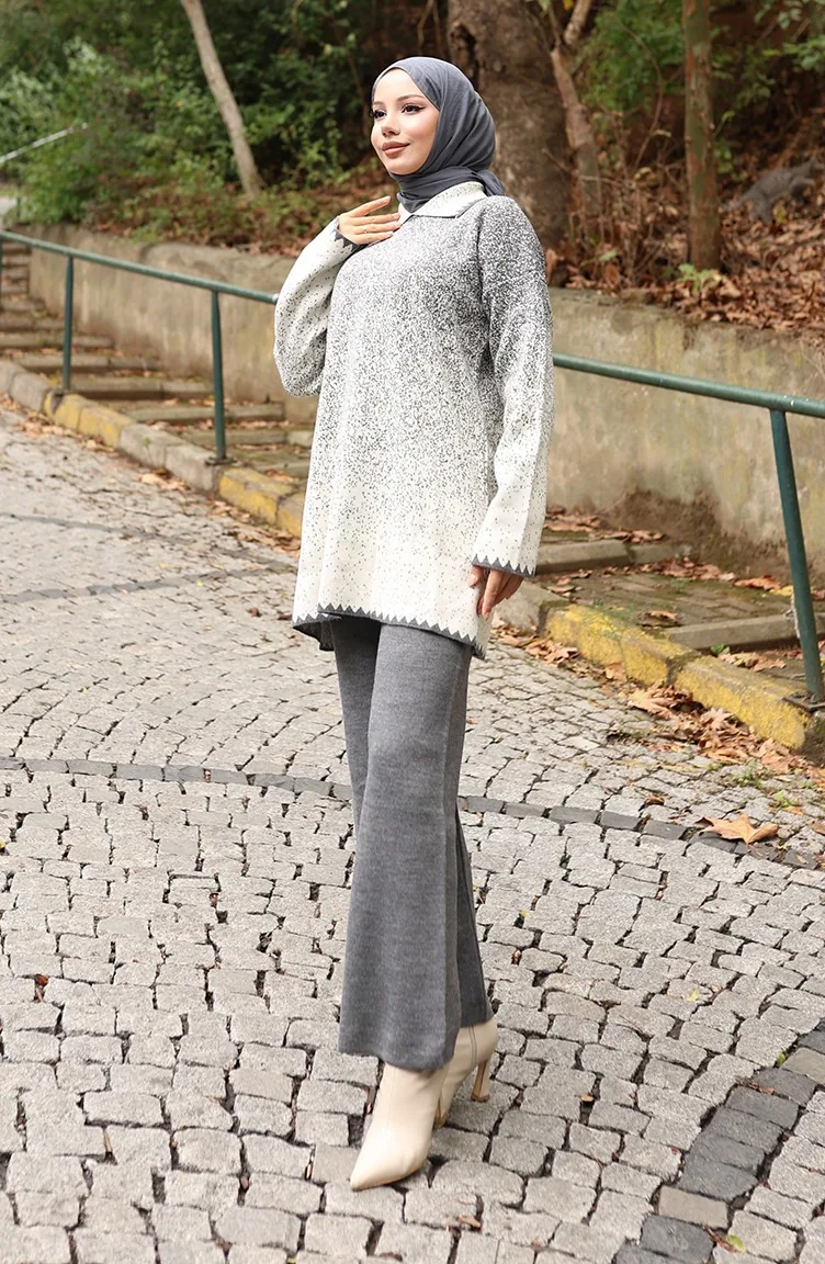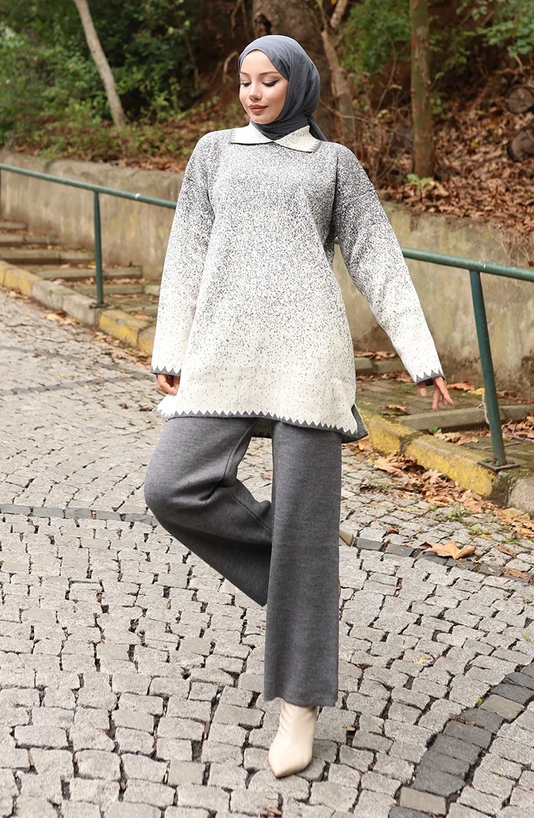 بدلة محبوكة من قطعتين، بنطلون، تونيك، رمادي، 1123-06 1123-06