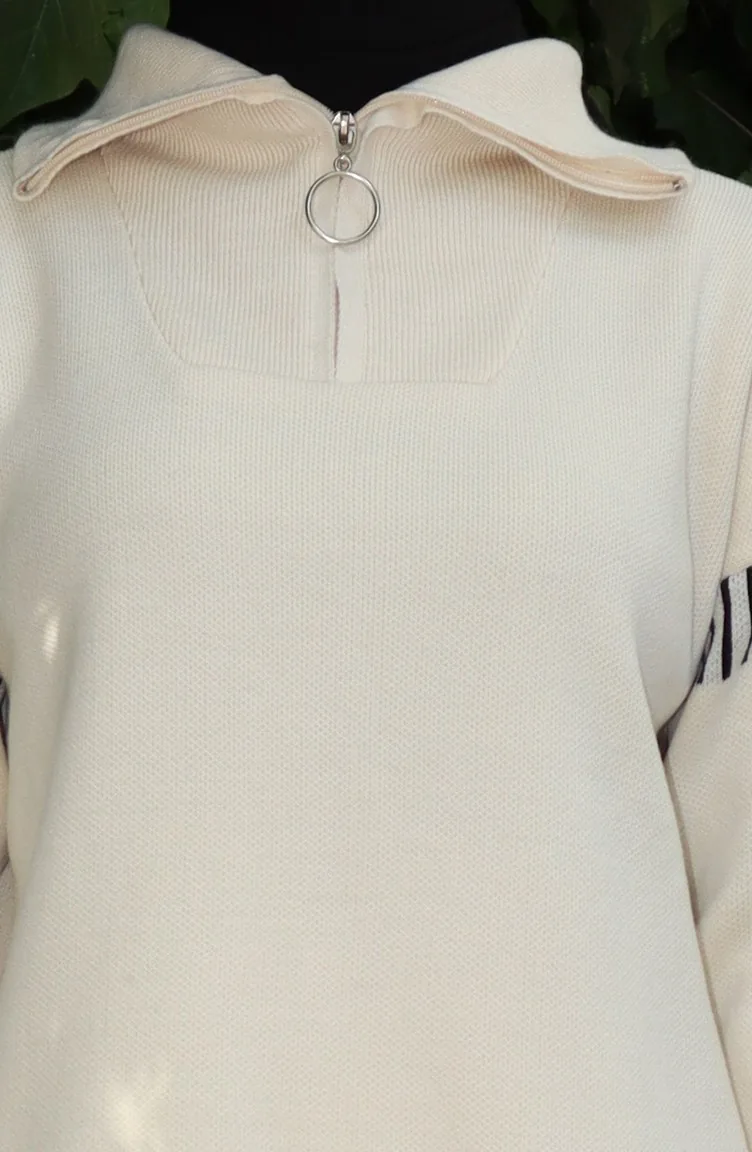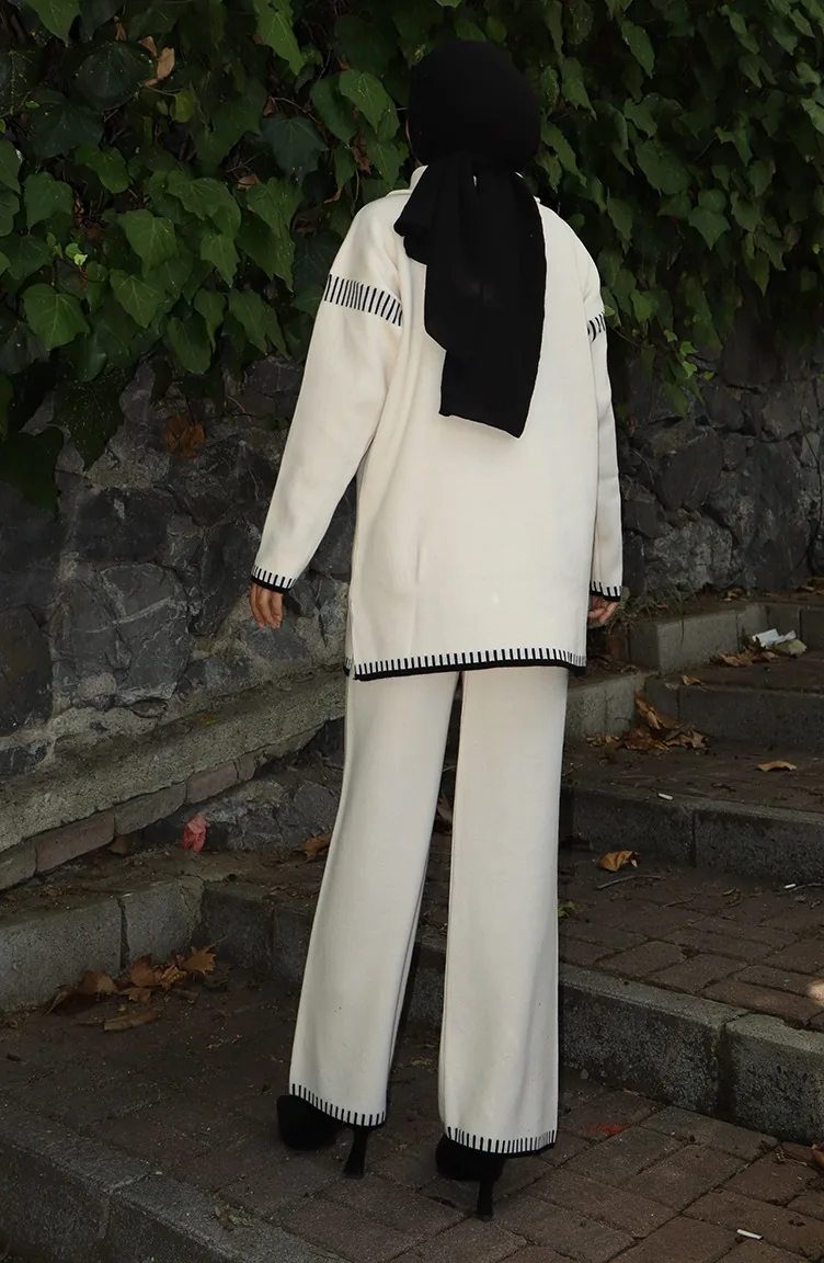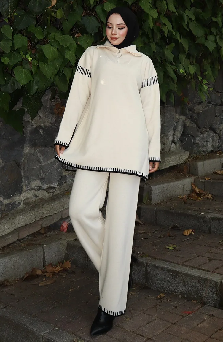 بدلة محبوكة من قطعتين، سترة وبنطلون وياقة وسحاب، لون بيج، 1061-06 1061-06