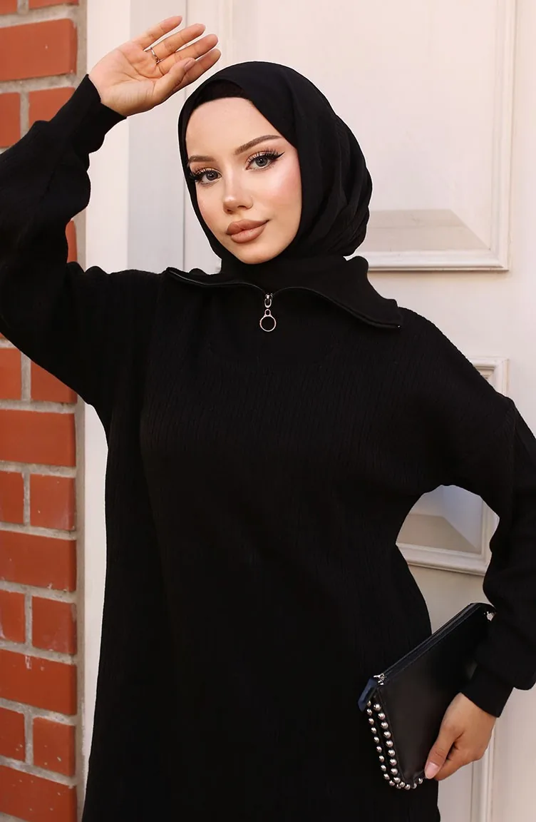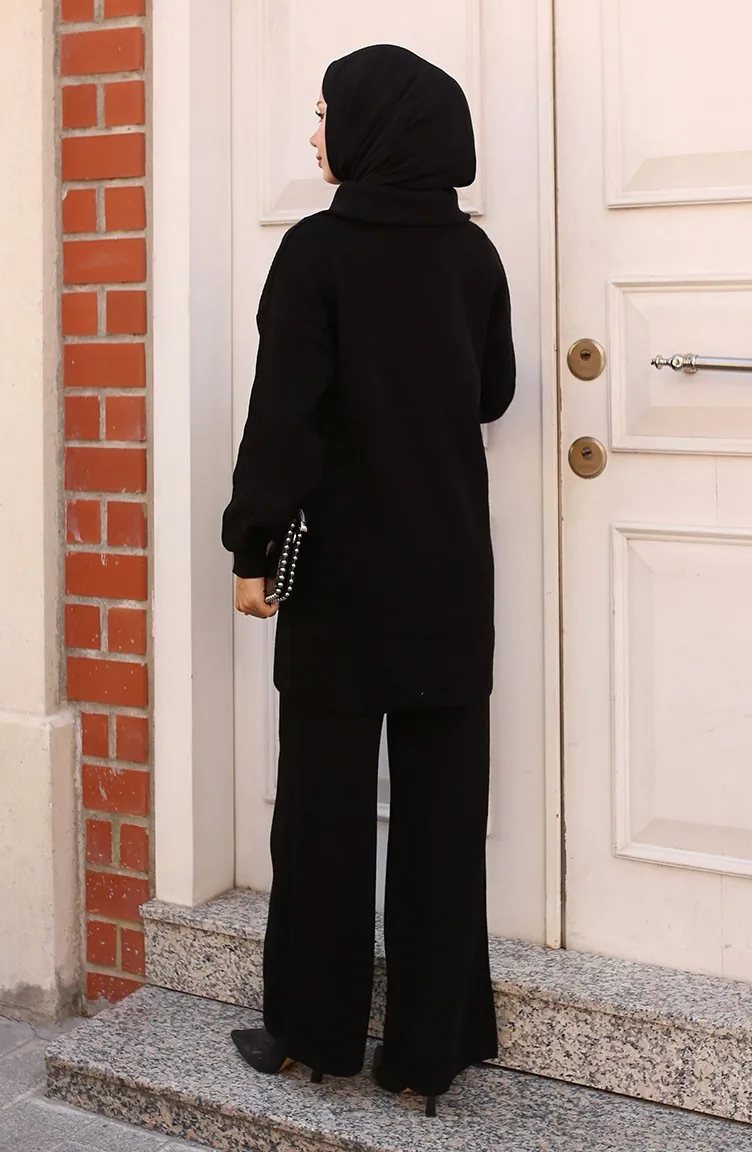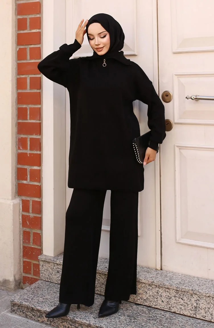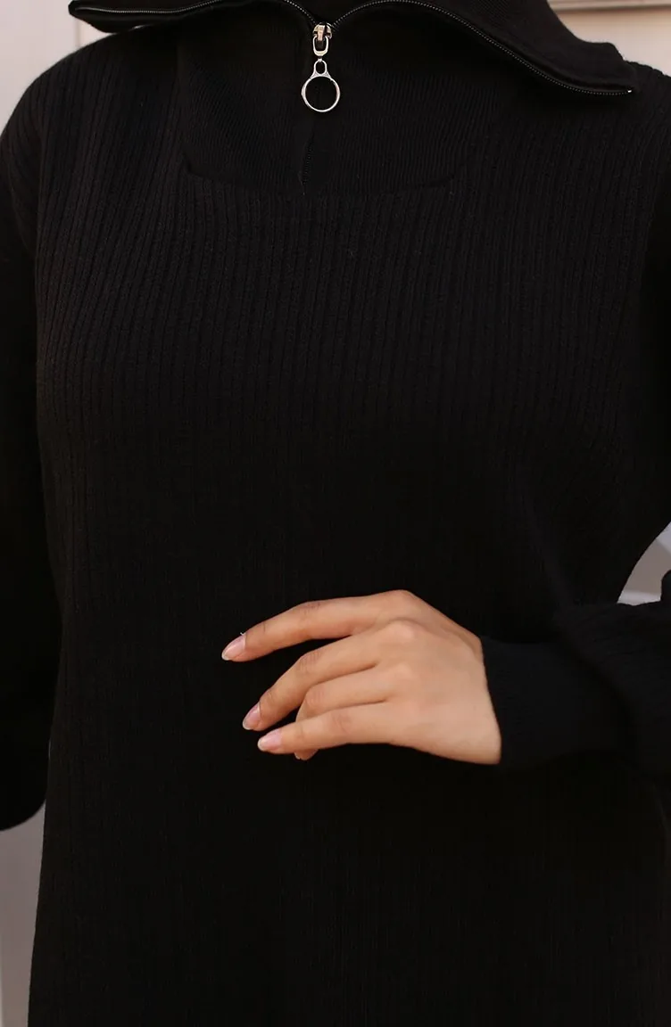 طقم تريكو مضلع وياقة سحاب 11036-03 لون أسود 11036-03