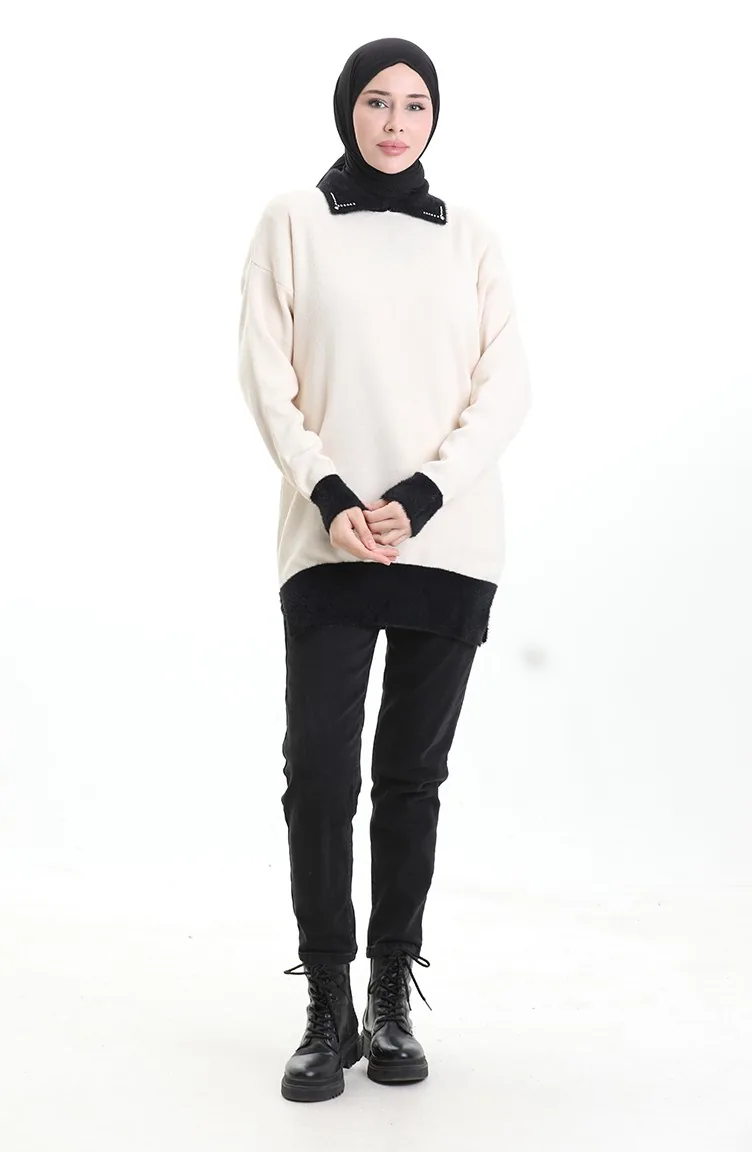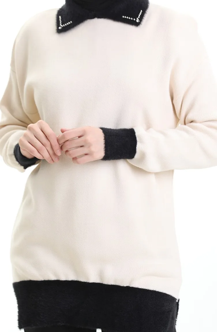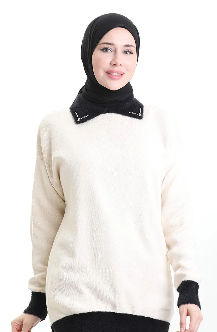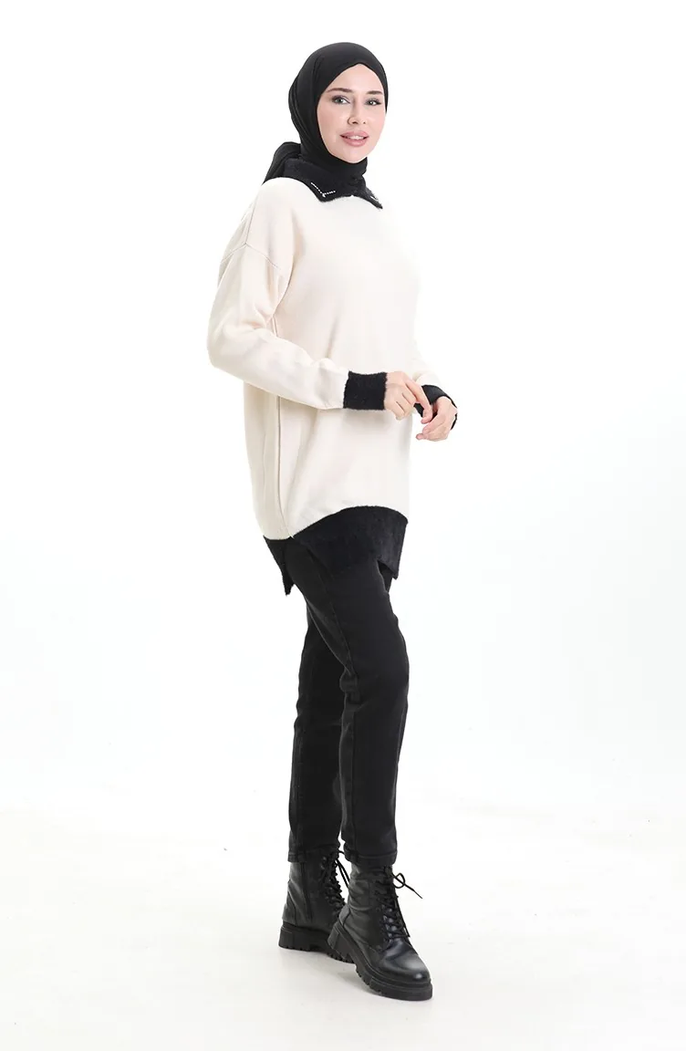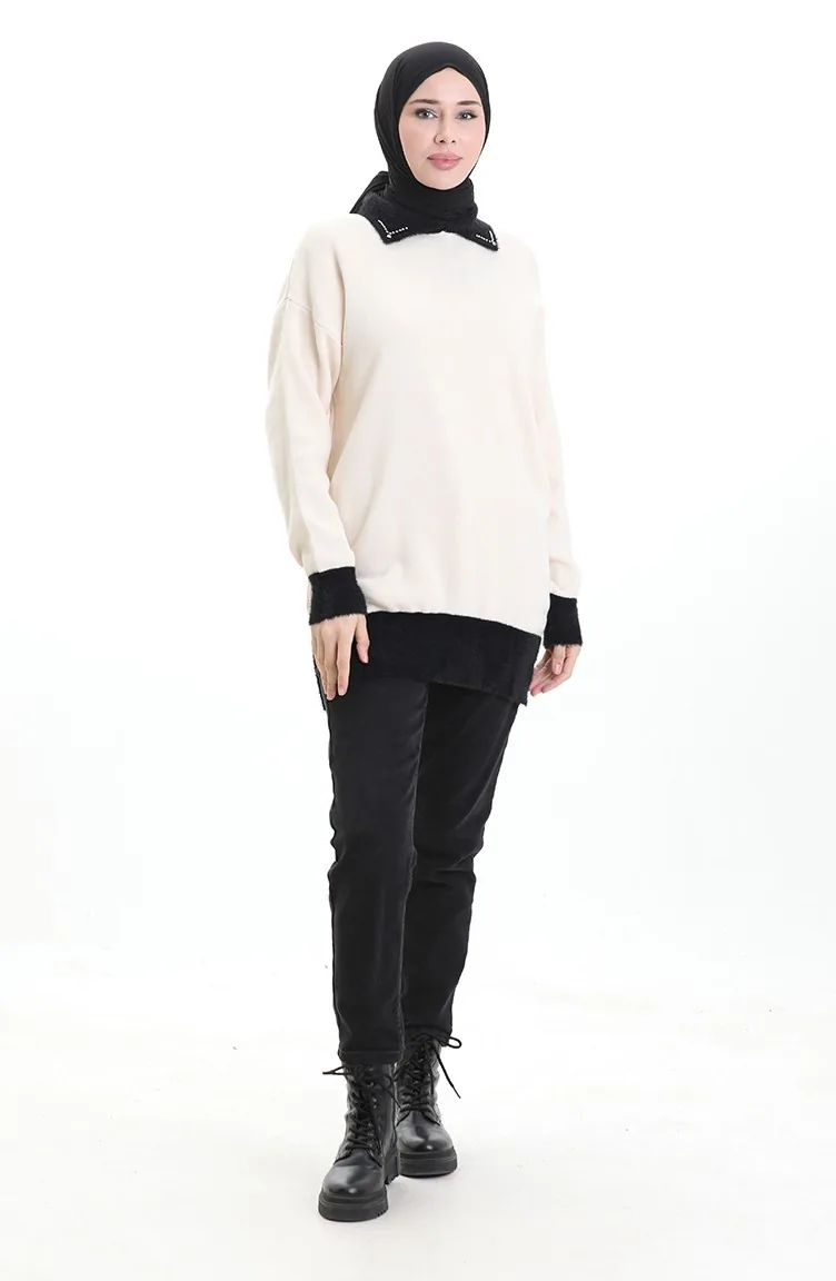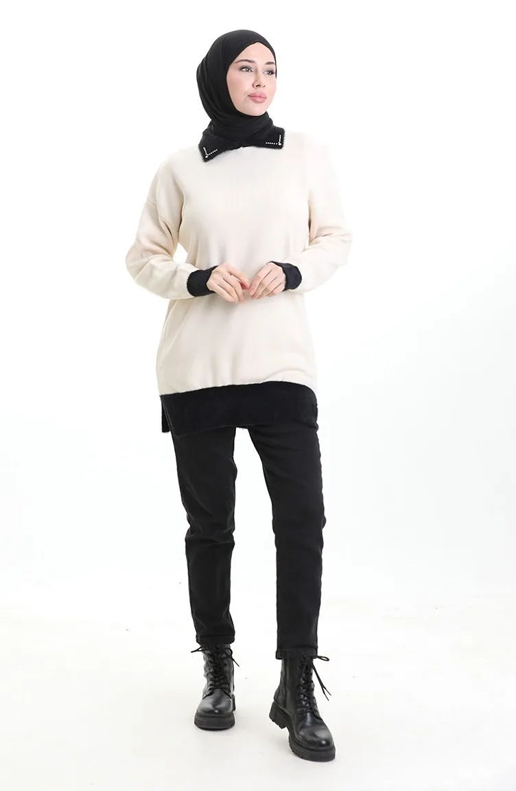 تونيك محبوك ومُطرز بالخرز 3002-04 بيج 3002-04