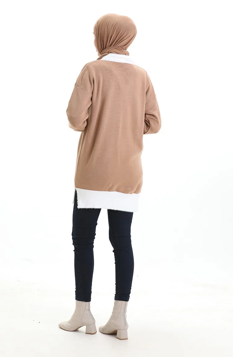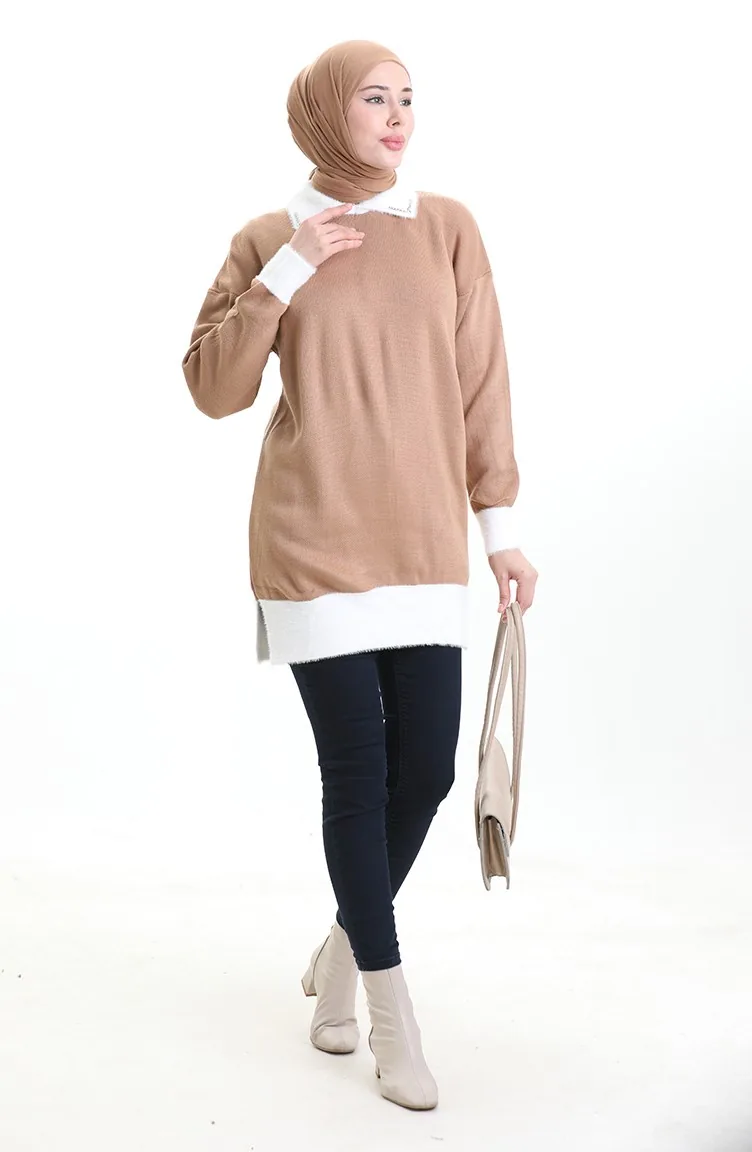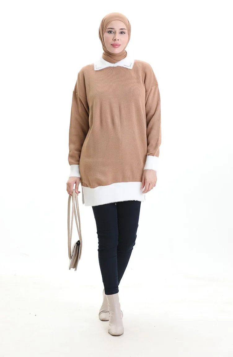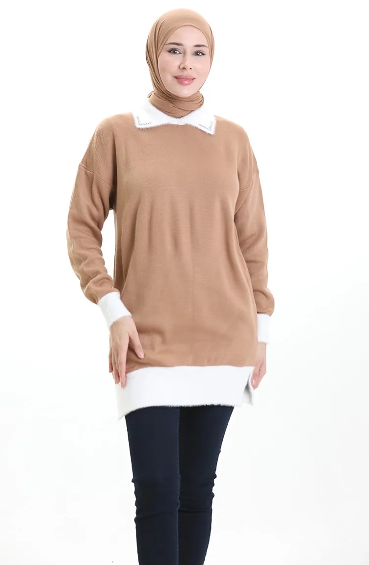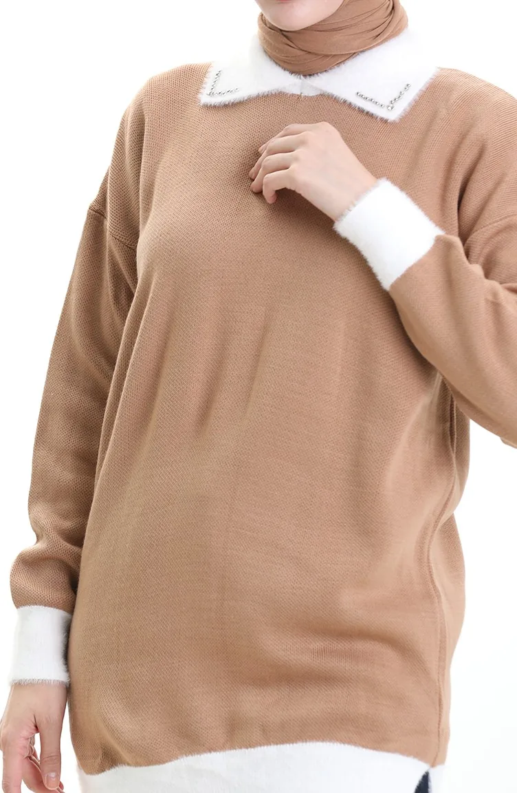 تونيك محبوك مزين بالخرز 3002-12 بلون القهوة الحليبية 3002-12
