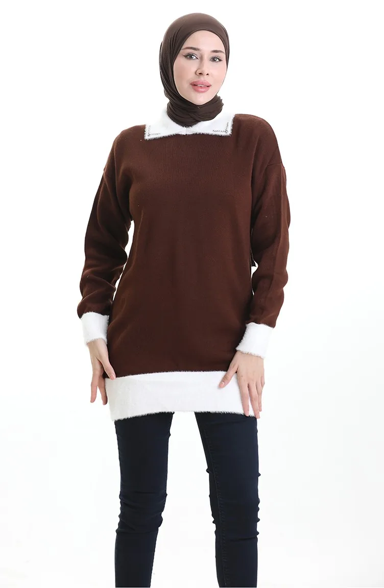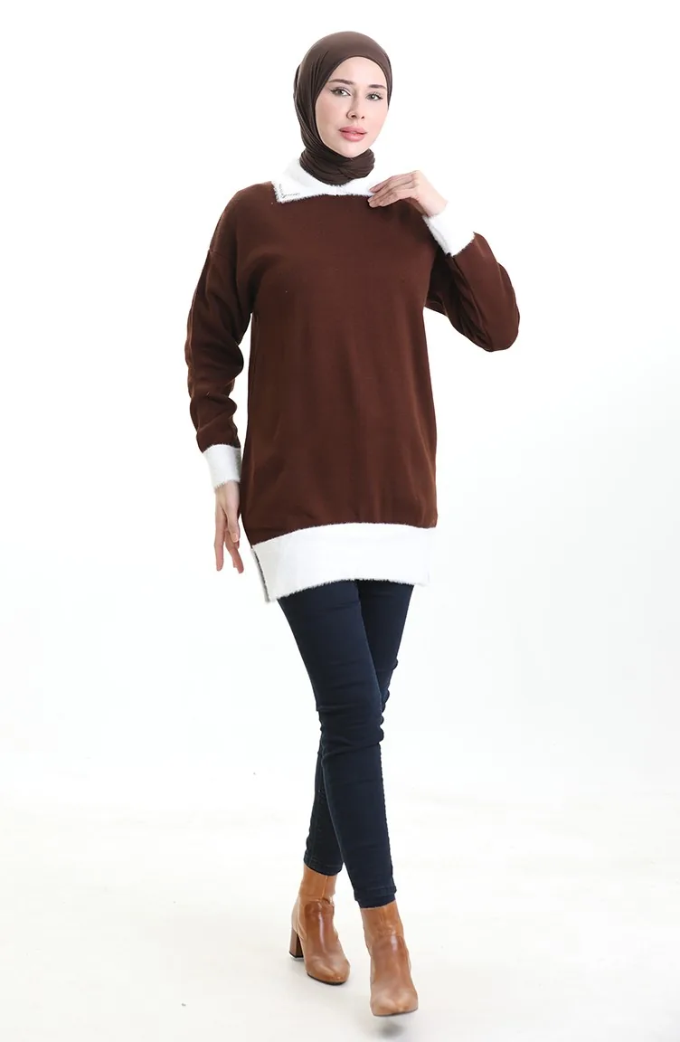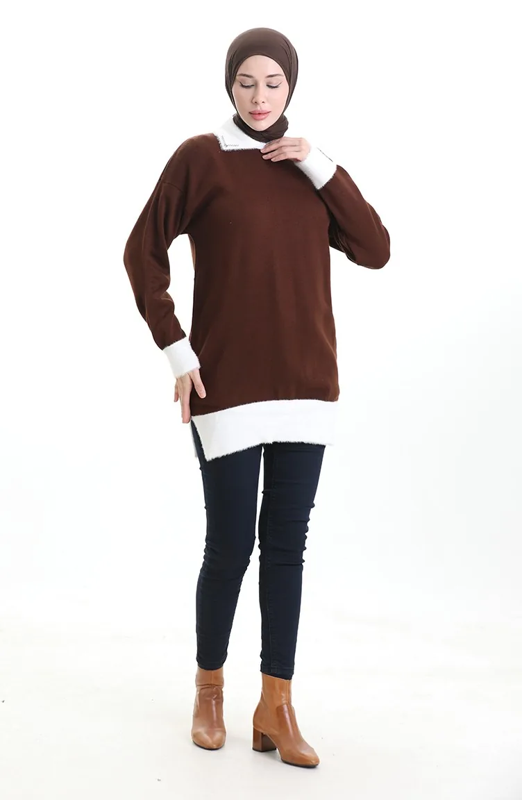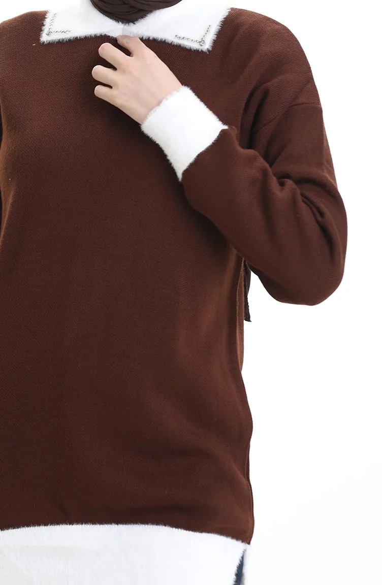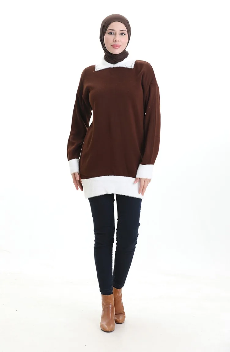 تونيك محبوك ومزين بالخرز 3002-13 بني 3002-13