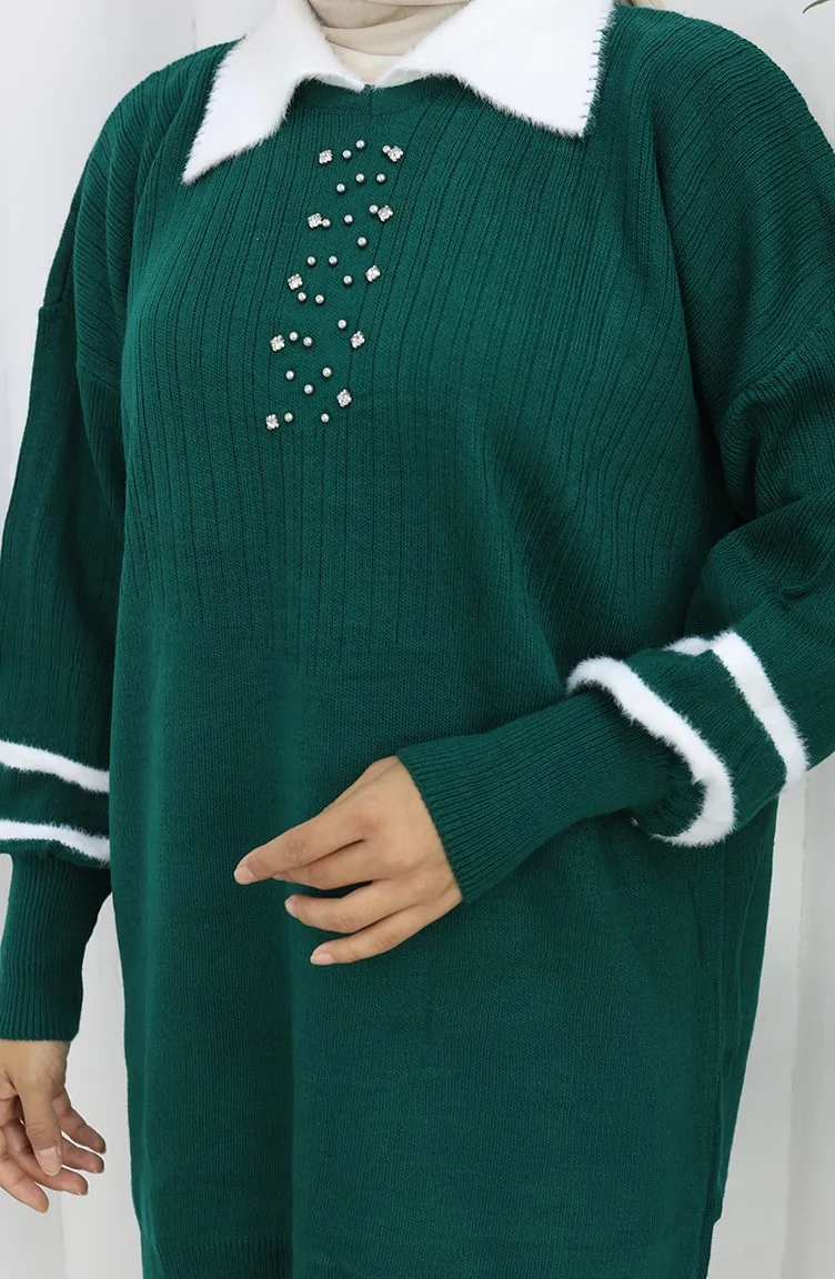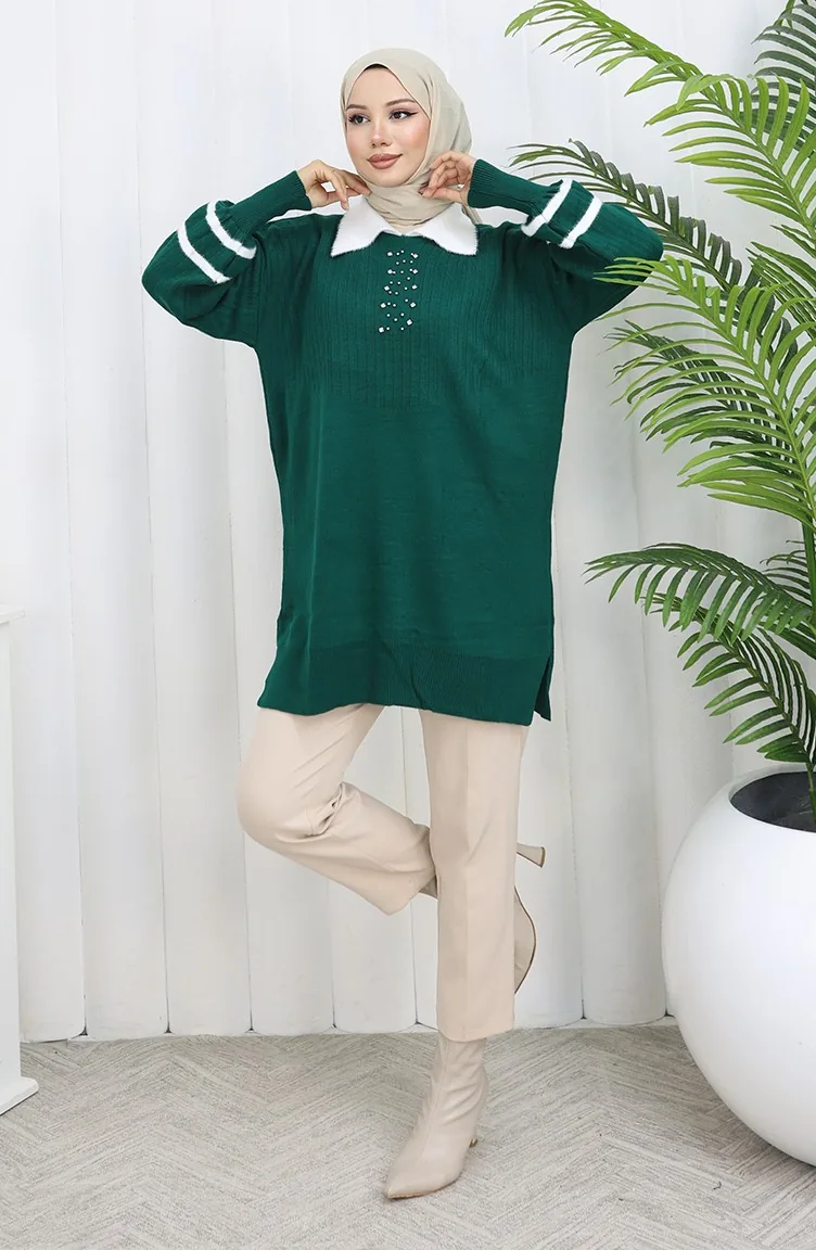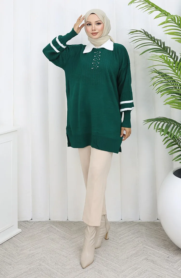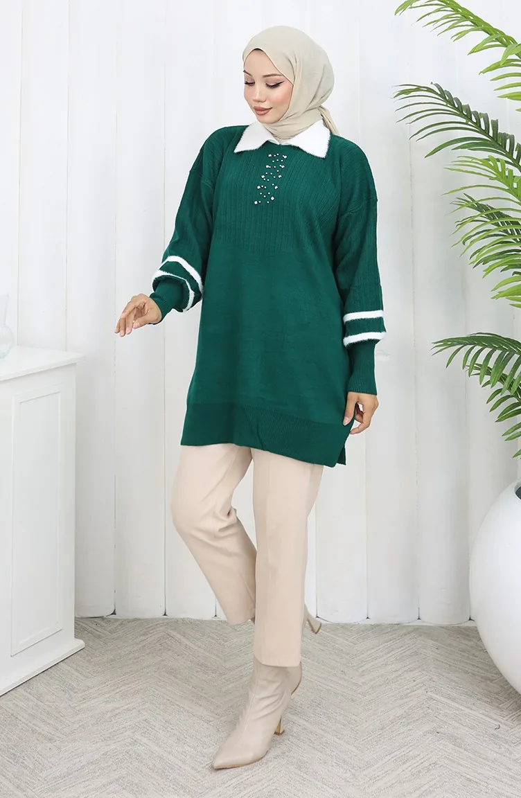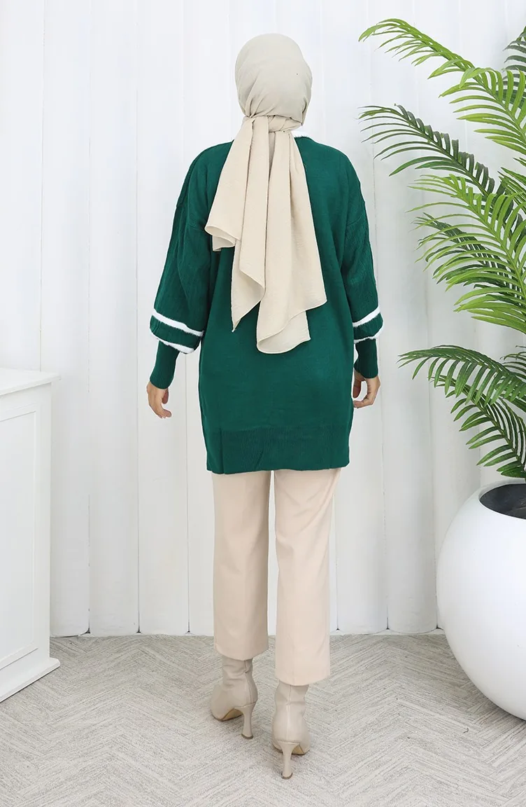 سترة محبوكة بأكمام منفوخة وياقة 3007-06 بترولي 3007-06