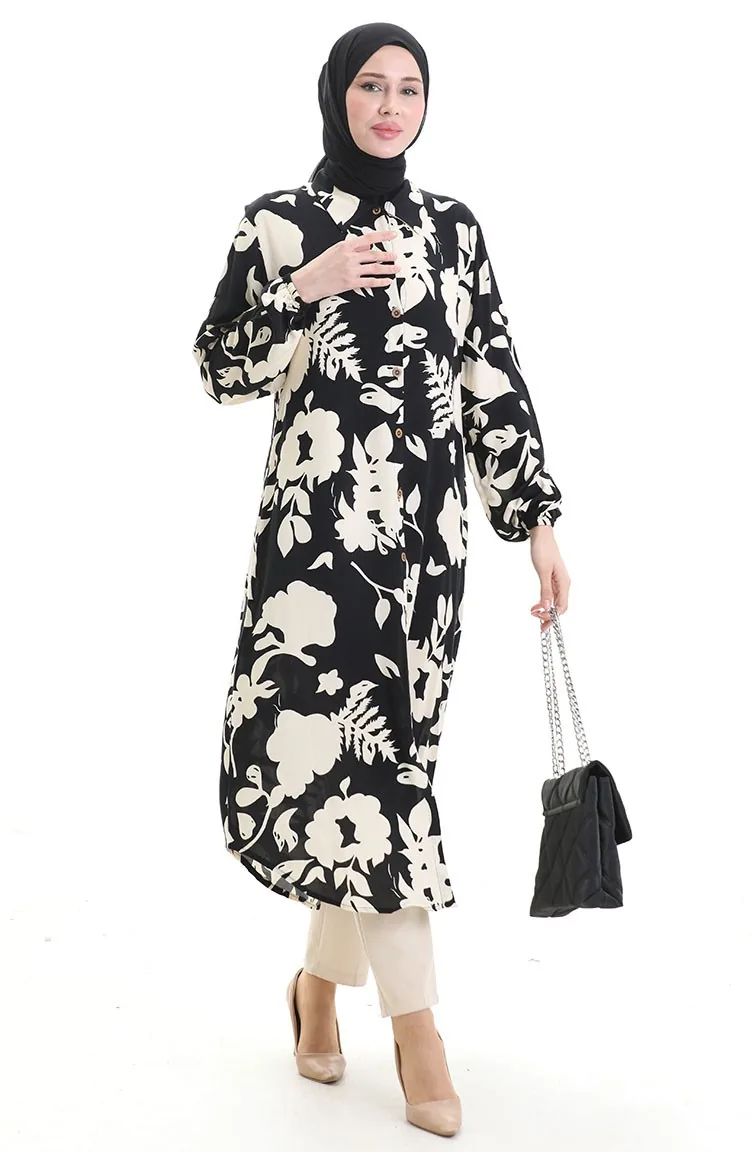 تونيك طويل بأزرار 0095-04 أسود بيج 0095-04