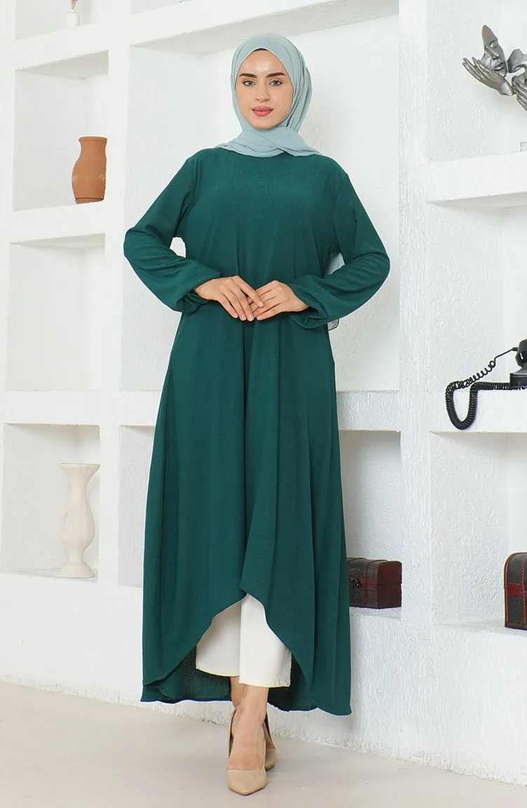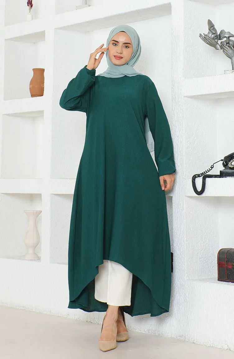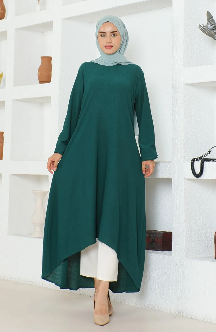 بورومجوك تونيك طويل بتصميم غير متماثل من القماش 1034-01 لون أخضر زمردي 1034-01