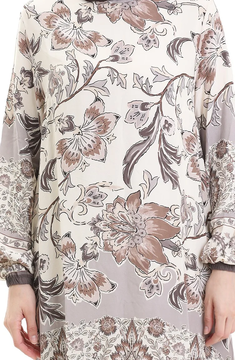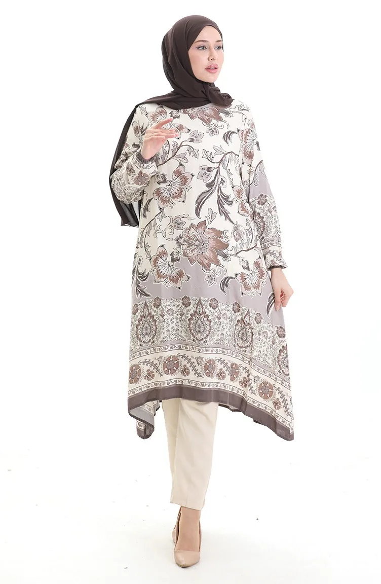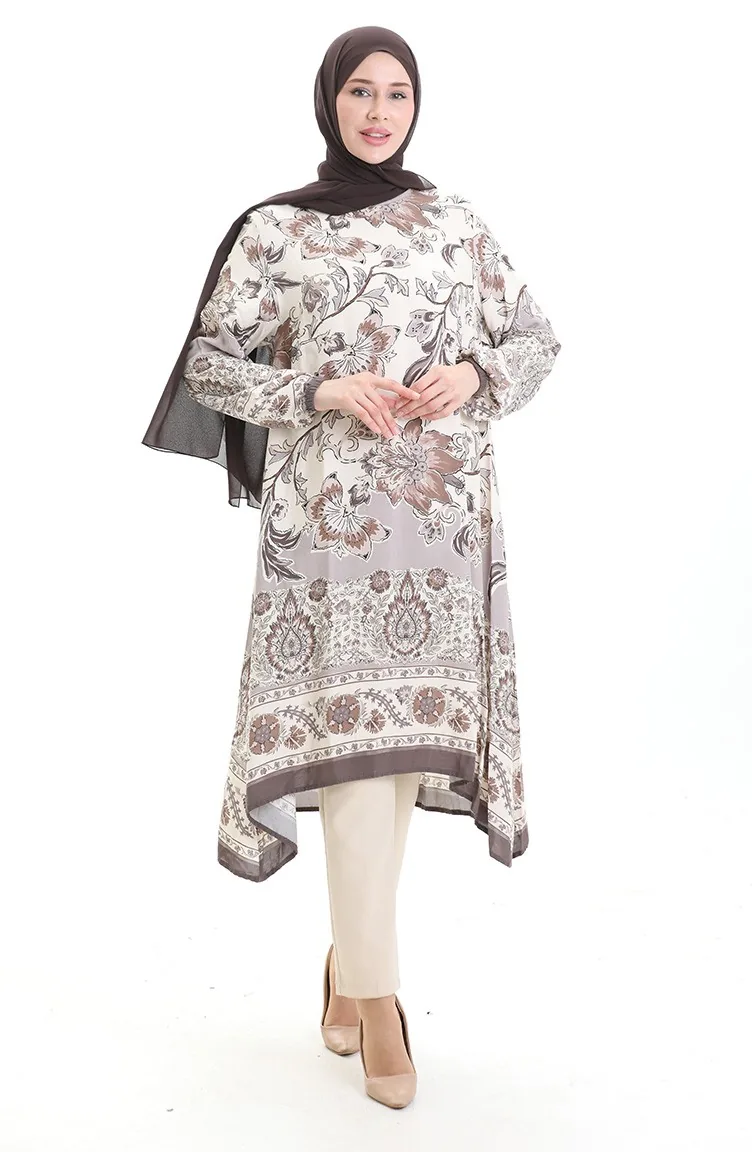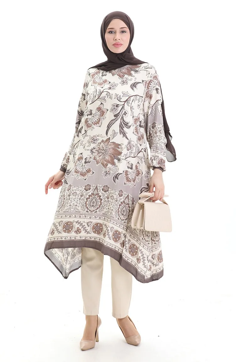 تونيك فيسكوز منقوش 1006-04 بني 1006-04