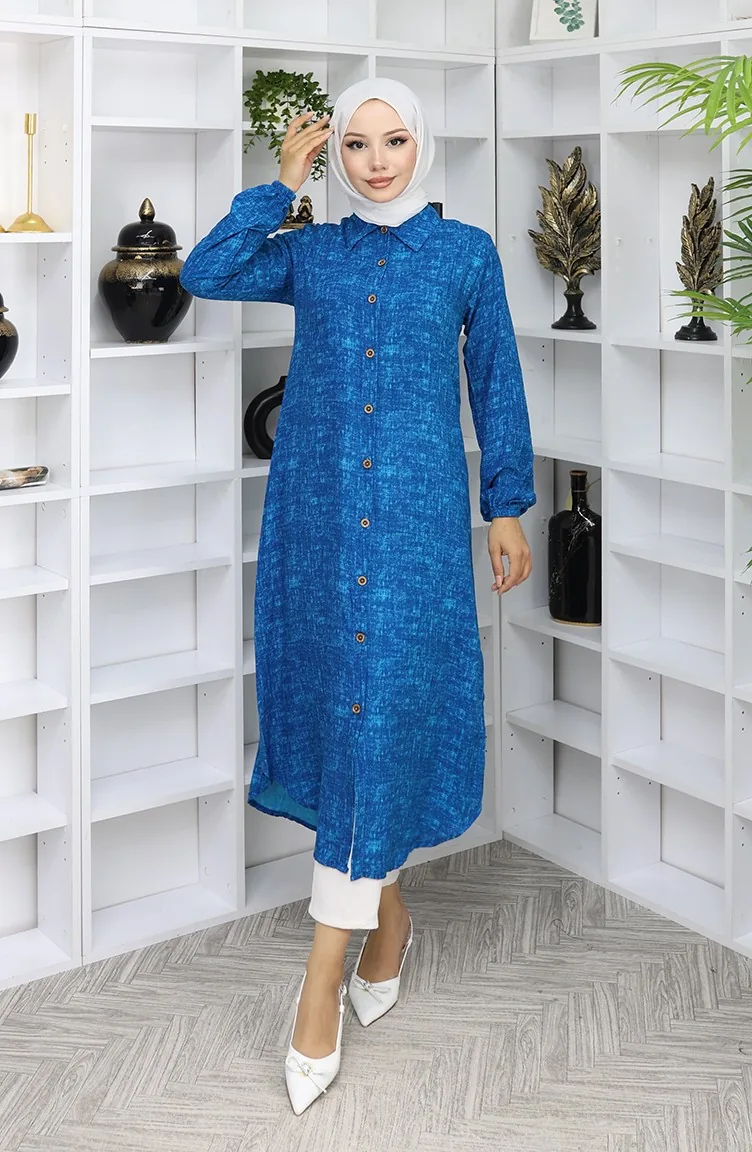 تونيك طويل بأزرار من قماش الفيسكوز 0070-02 برلمان 0070-02