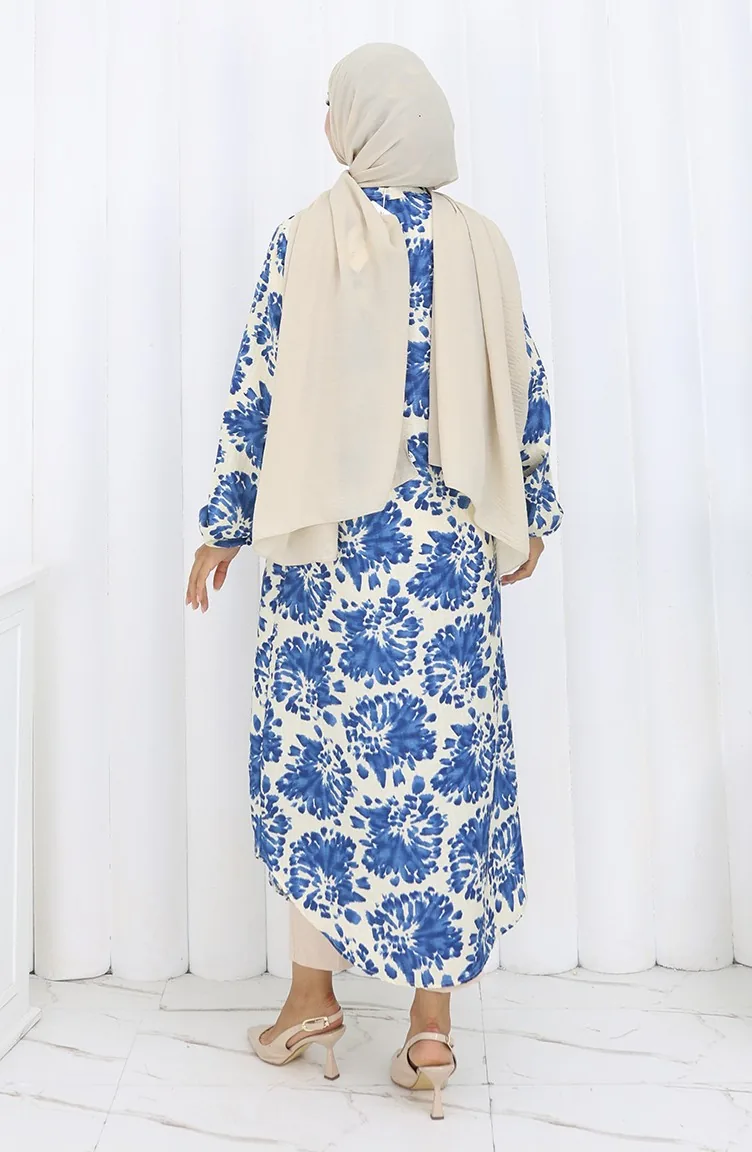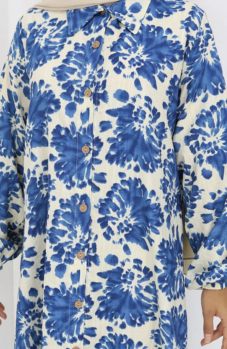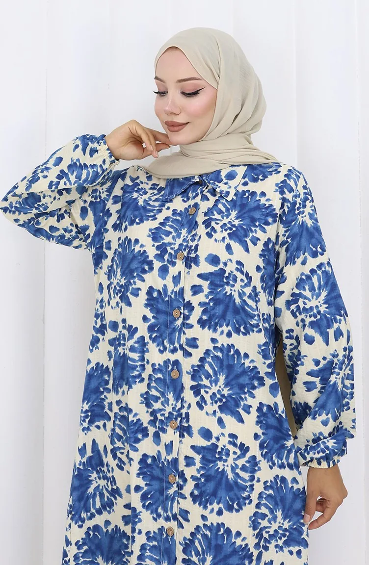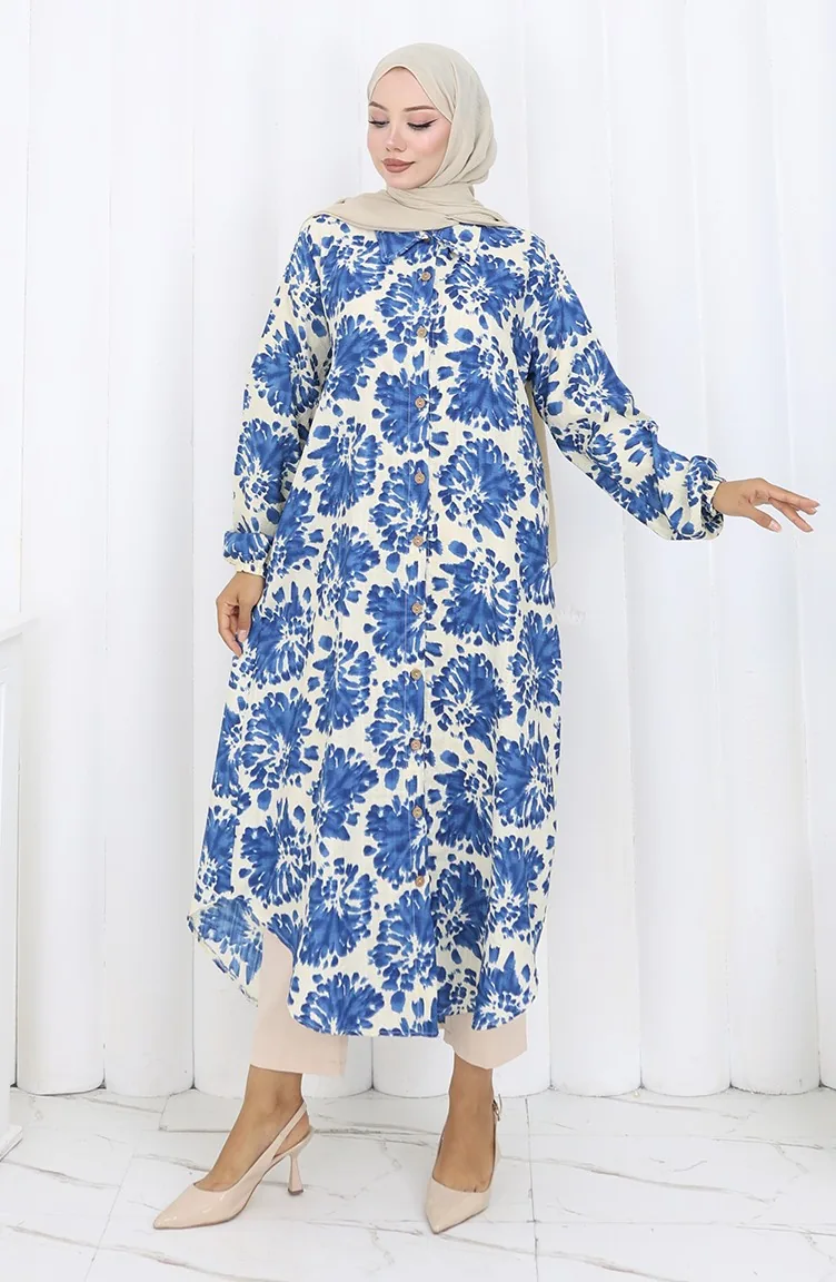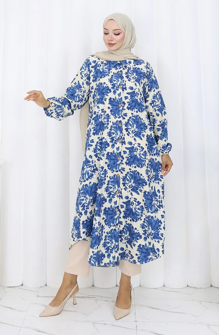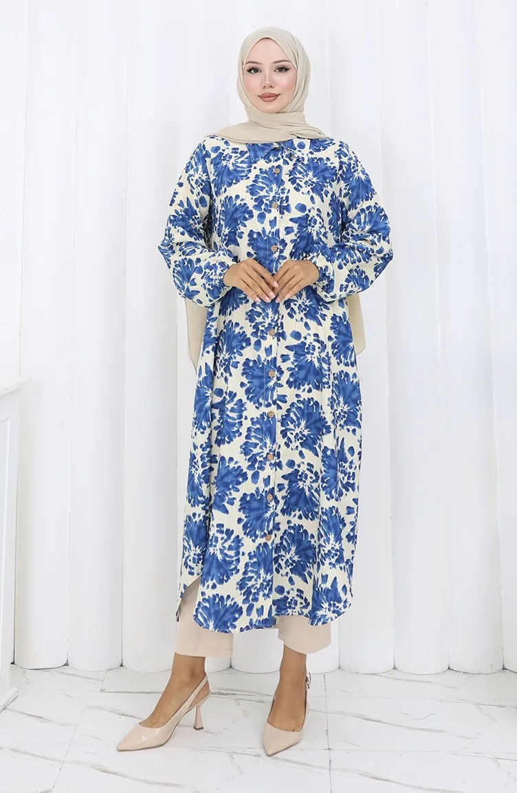 تونيك طويل بأزرار من قماش الفيسكوز 0174-06 بيج أزرق داكن 0174-06