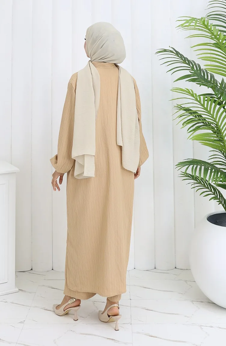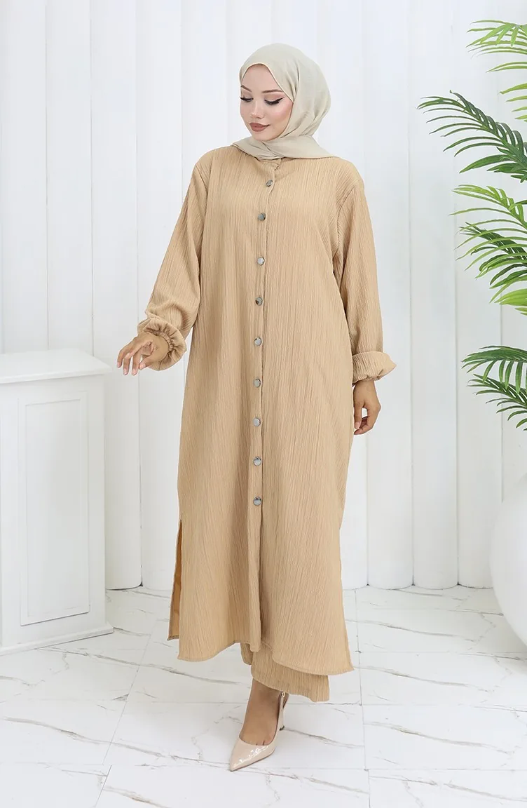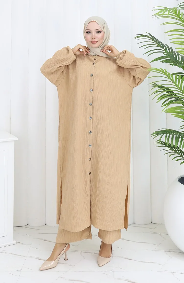 بدلة مزدوجة من قماش الكريب، بنطلون، تونيك، 2093-01، لون القهوة والحليب 2093-01