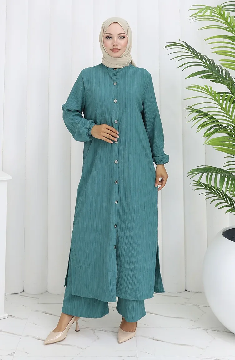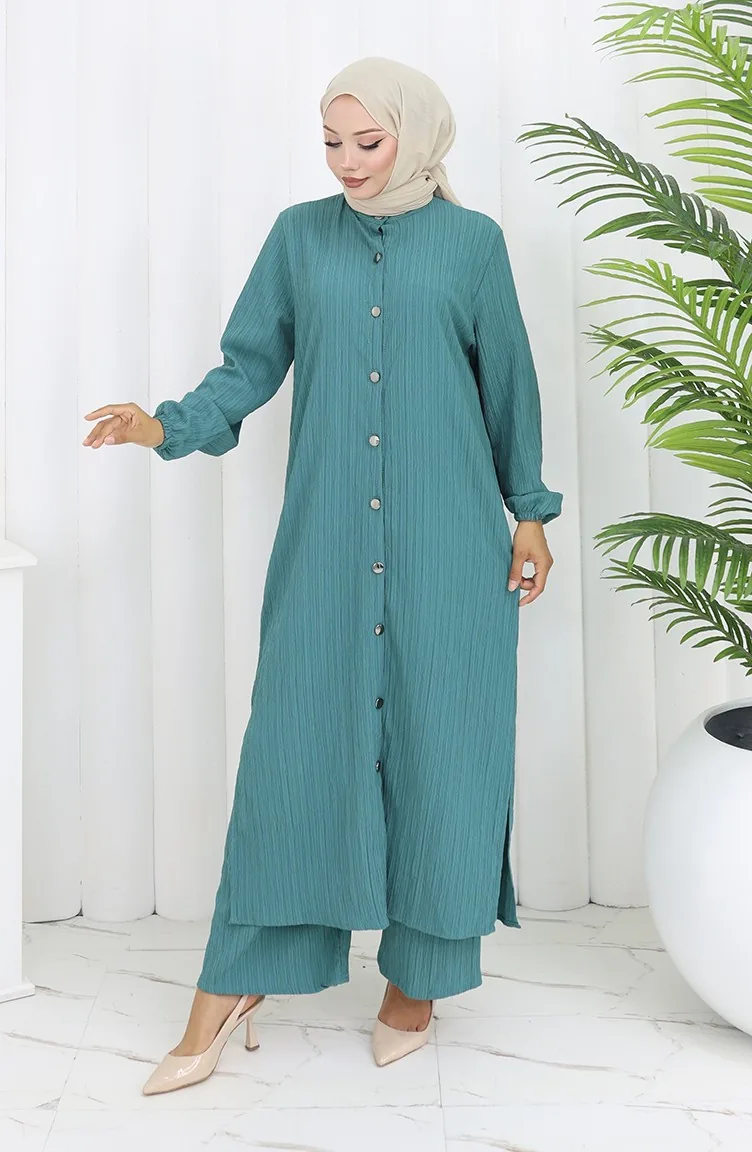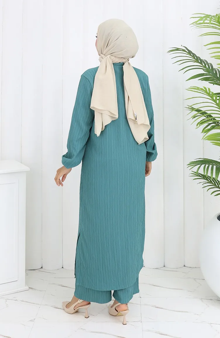 بدلة تونيك وبنطلون من قماش الكريب مكونة من قطعتين 2093-02 بترولي 2093-02