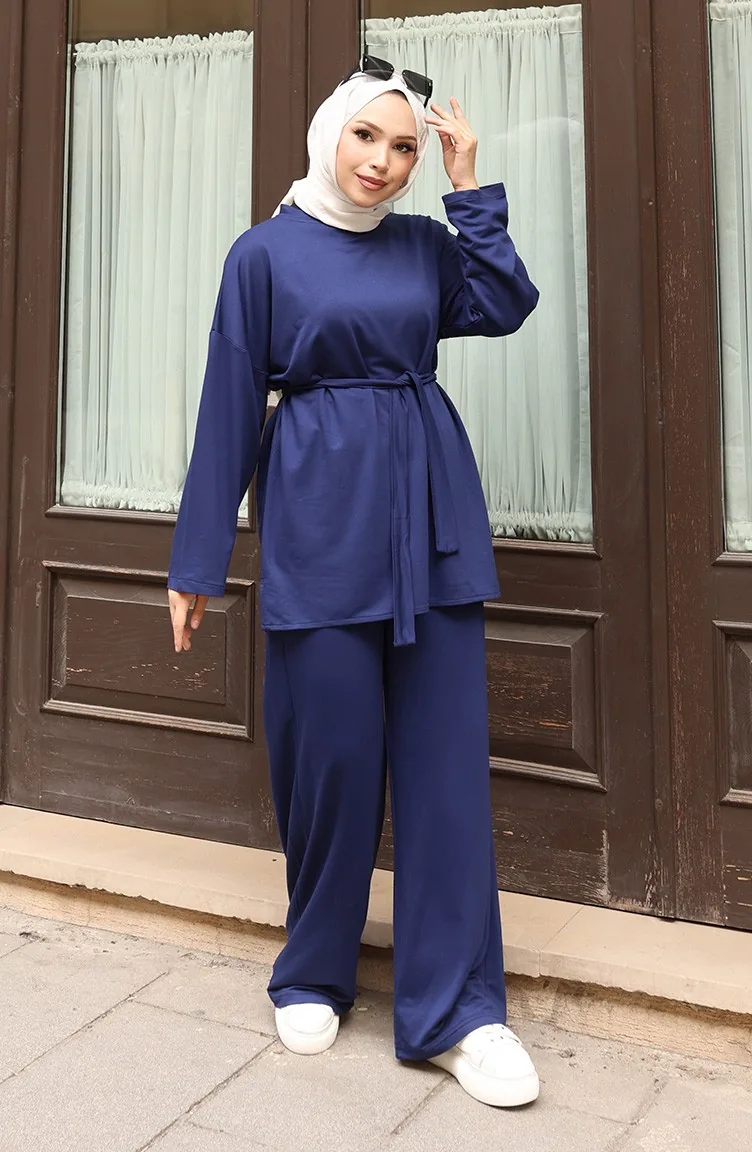 بدلة بنطلون حجاب بتفاصيل دانتيل 2174-01 أزرق داكن 2174-01