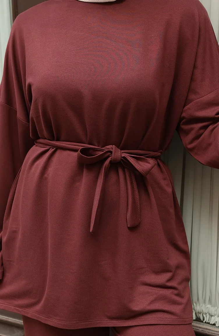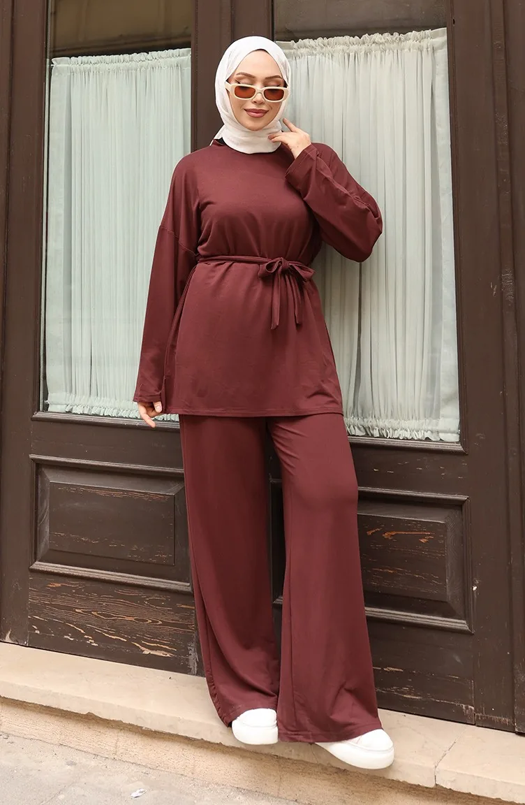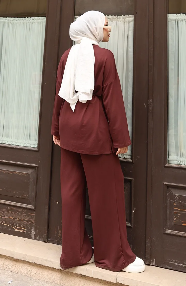 بدلة بنطلون حجاب بتفاصيل دانتيل 2174-05 بني 2174-05